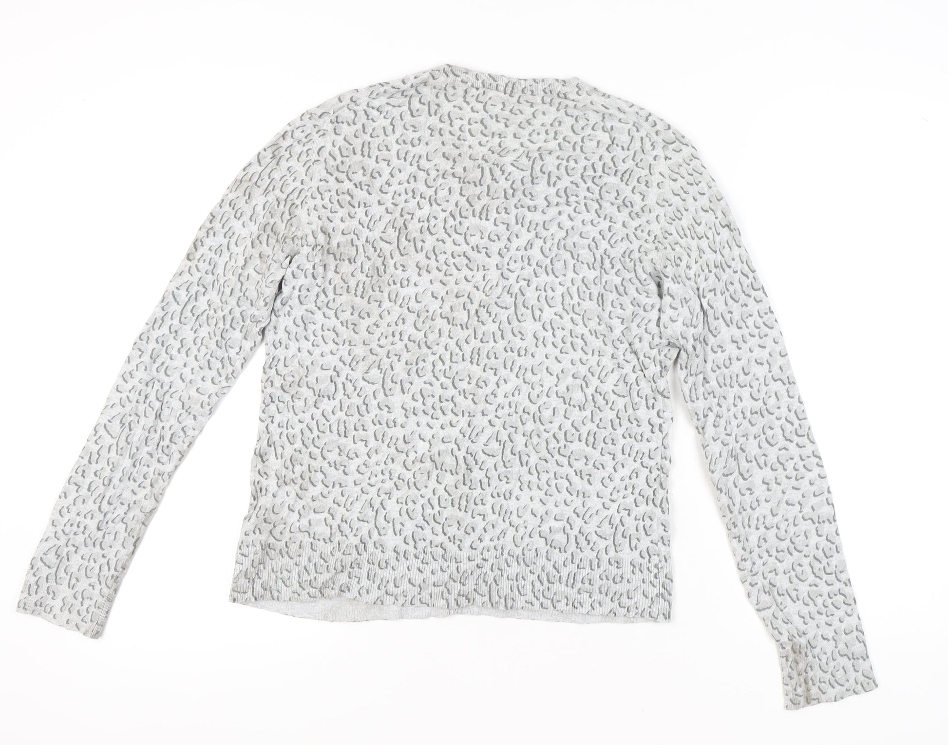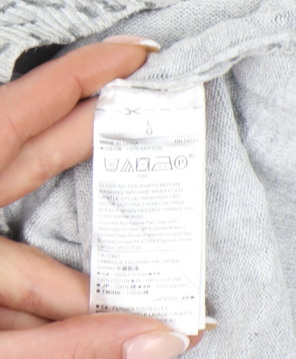 GAP Womens Grey Animal Print Cotton Cardigan Size L V-Neck Knit