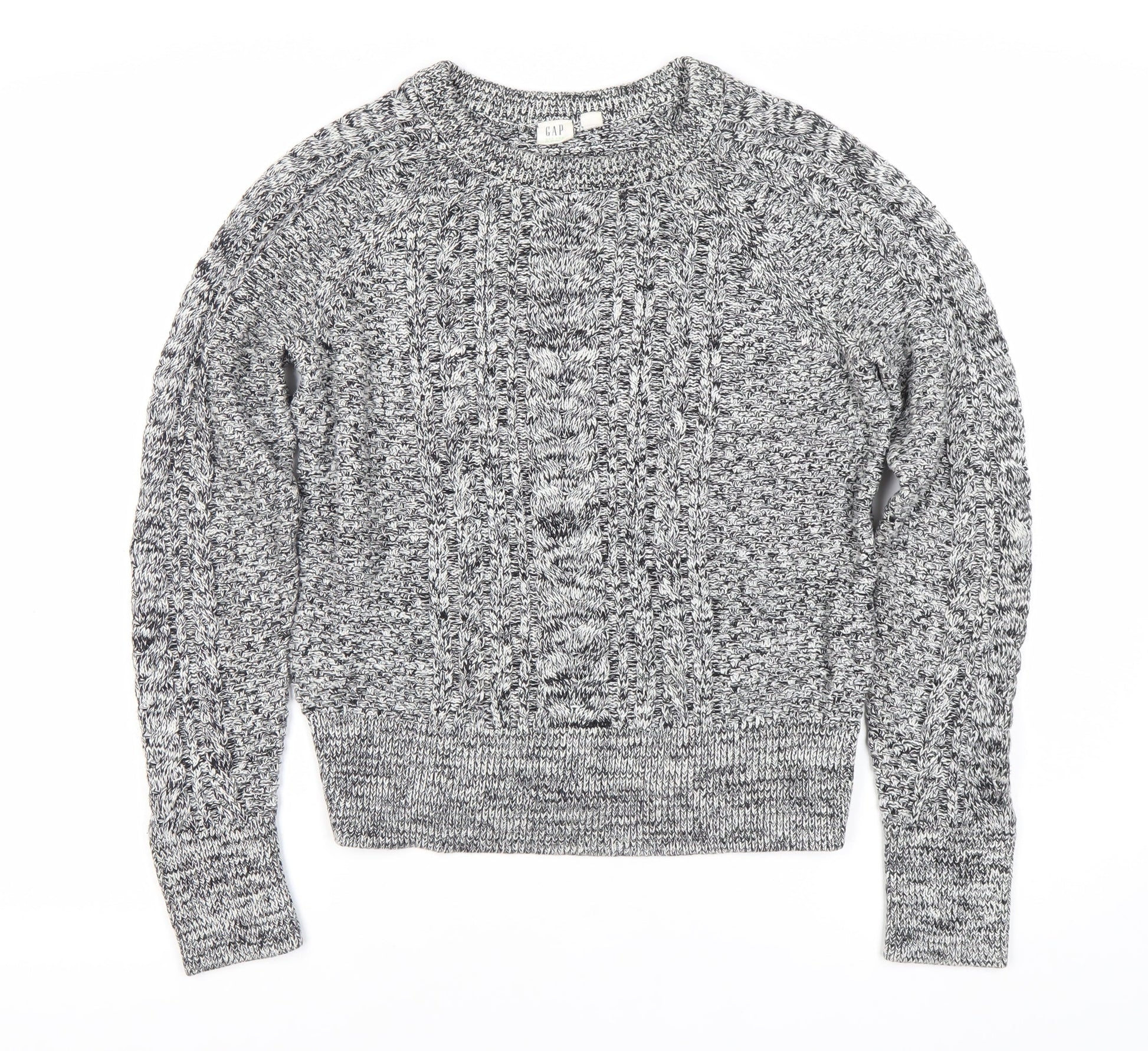 GAP Womens Grey Cotton Cable-Knit Crew Neck Jumper M