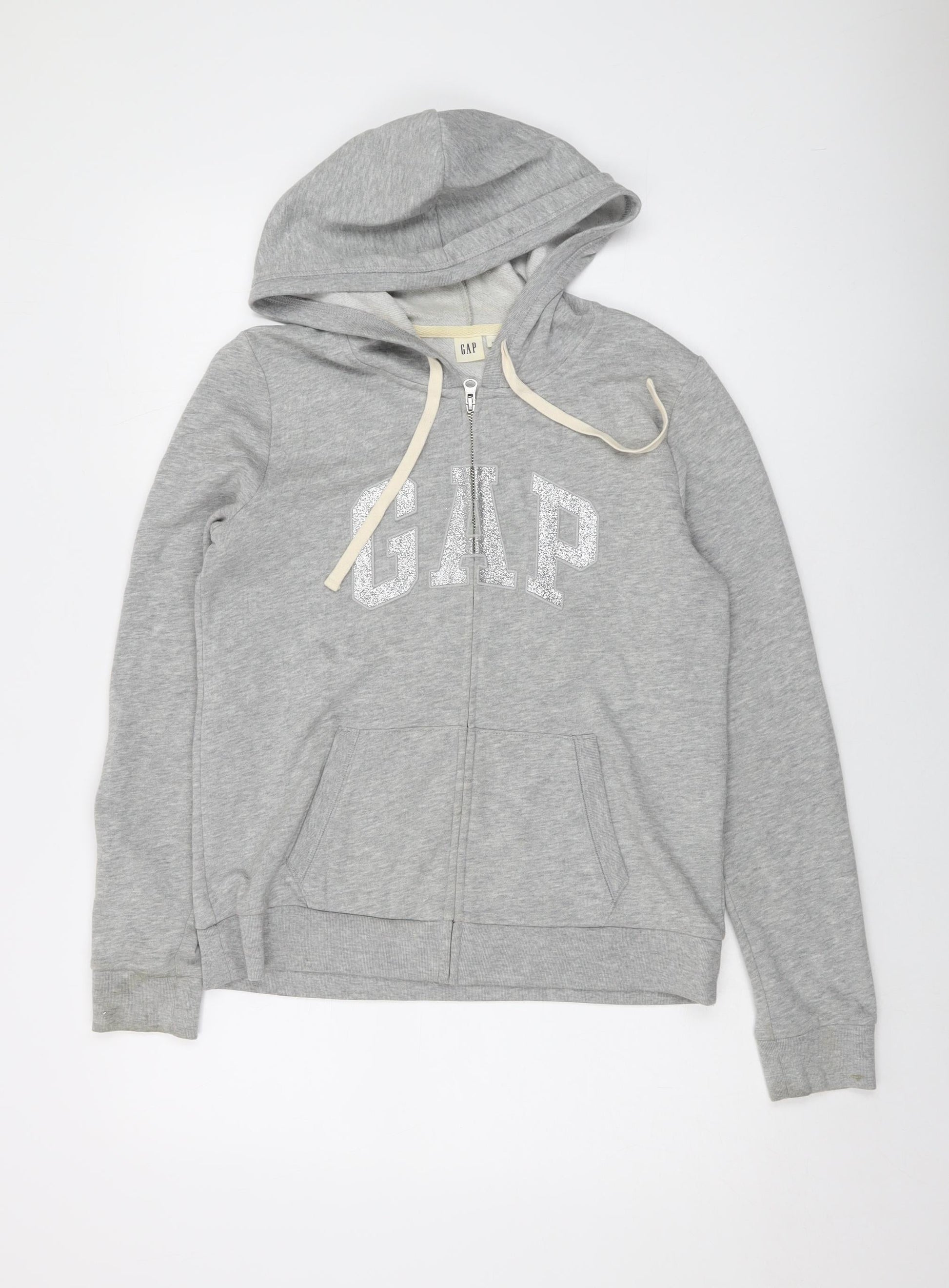 Gap Womens Grey Cotton Full Zip Hoodie Size S Zip - Logo