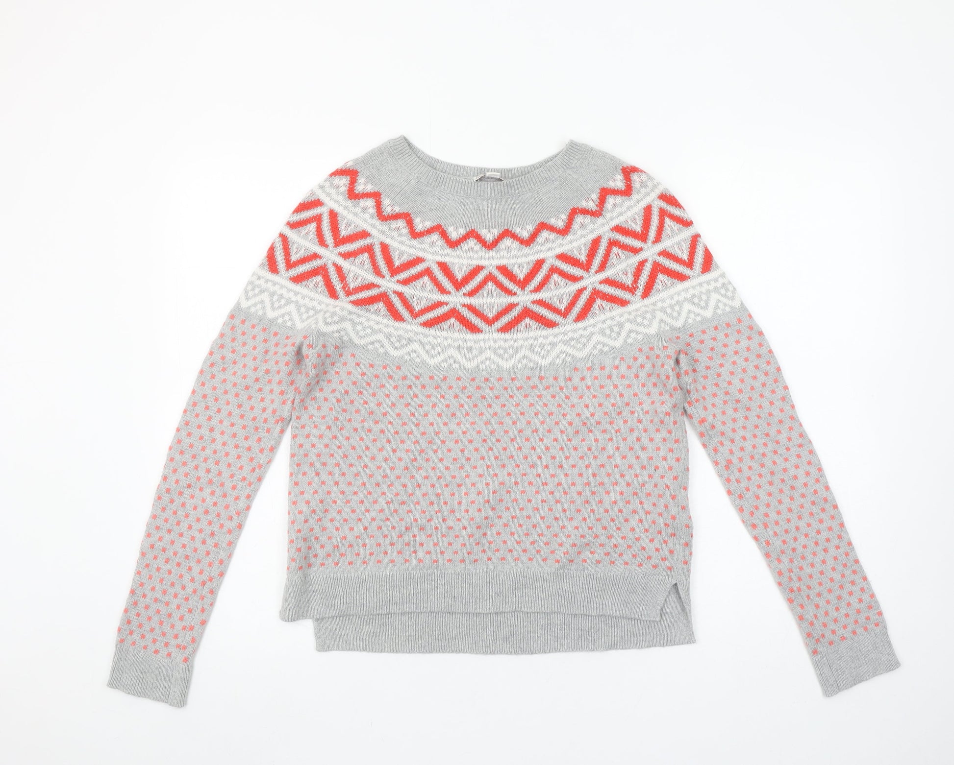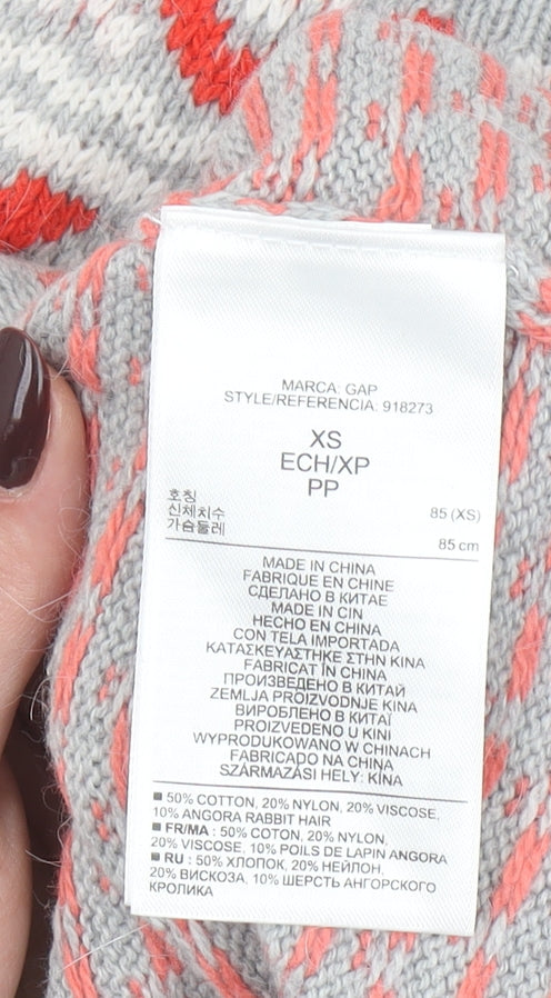 GAP Womens Grey Fair Isle Knit Jumper XS Crew Neck Long Sleeve