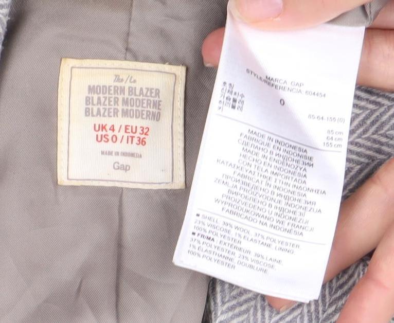 Gap Women's Grey Herringbone Blazer, UK 4, Regular Fit
