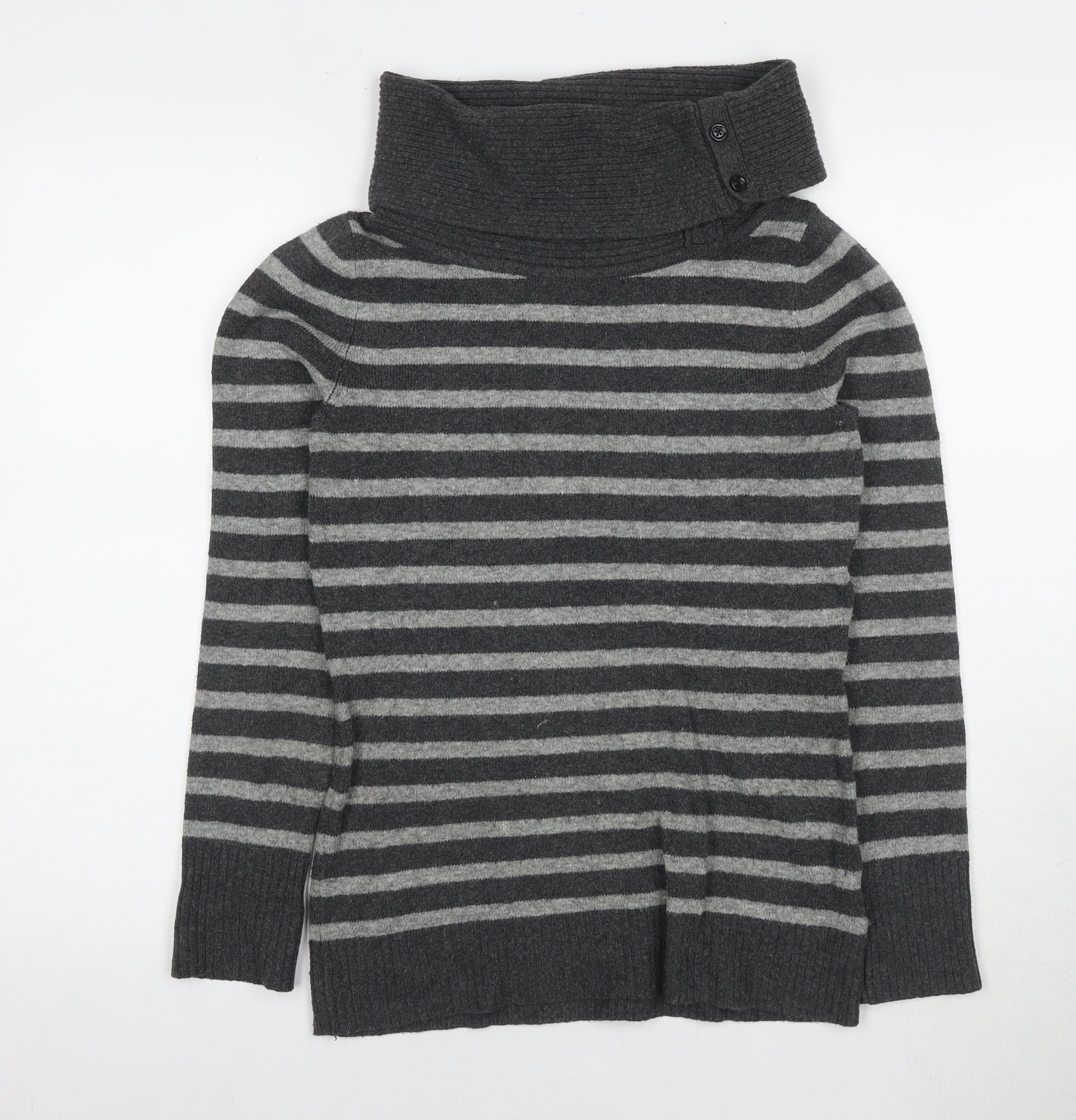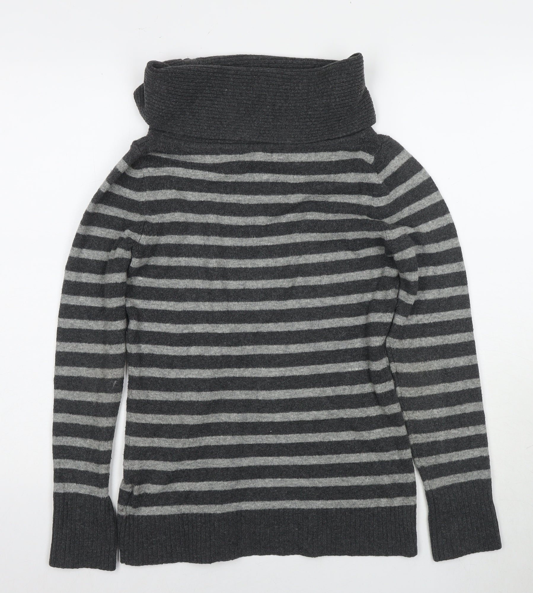 Gap Womens Grey Roll Neck Striped Cotton Pullover Jumper Size S