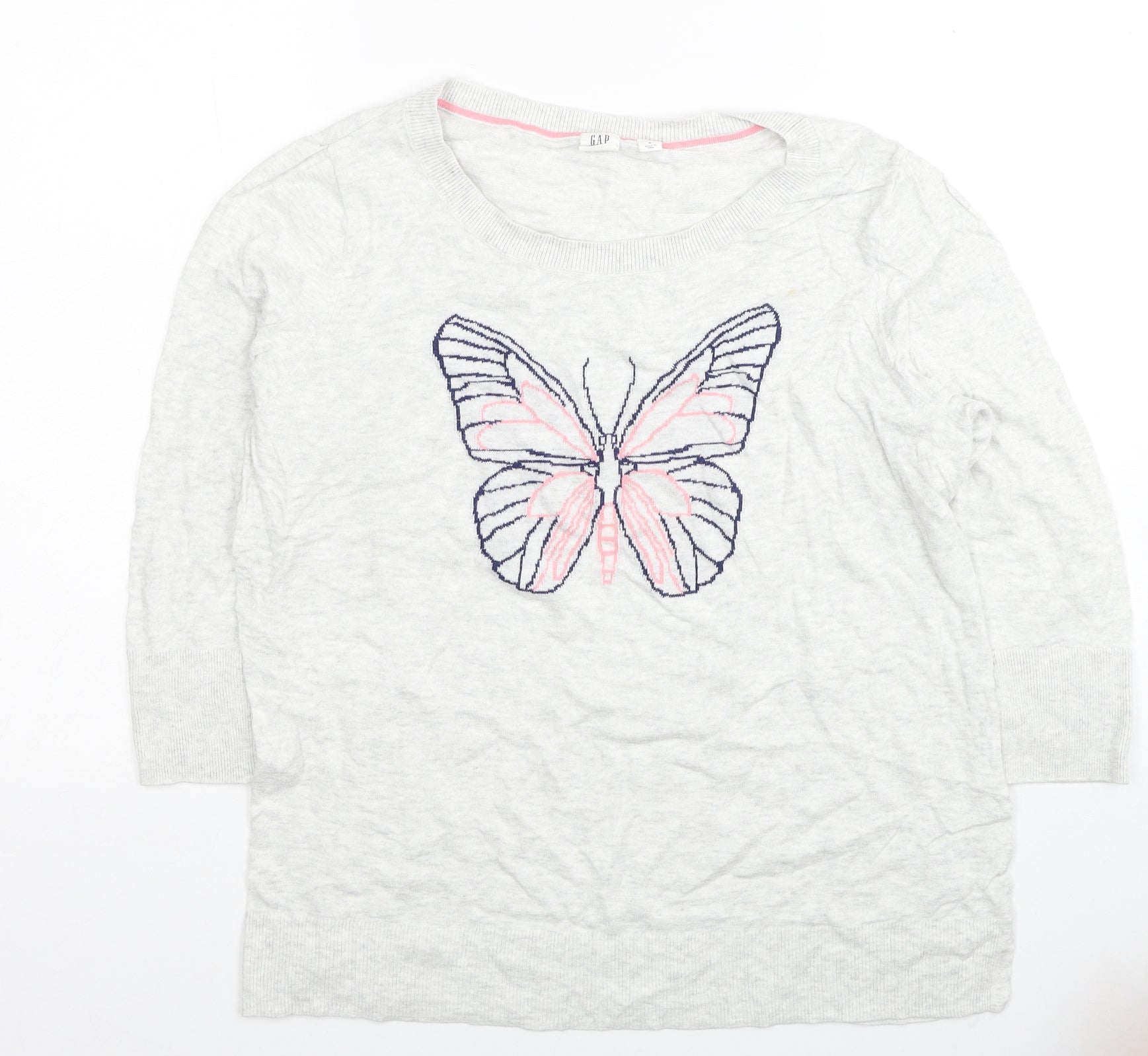 Gap Womens Grey Round Neck Cotton Pullover Jumper Size M