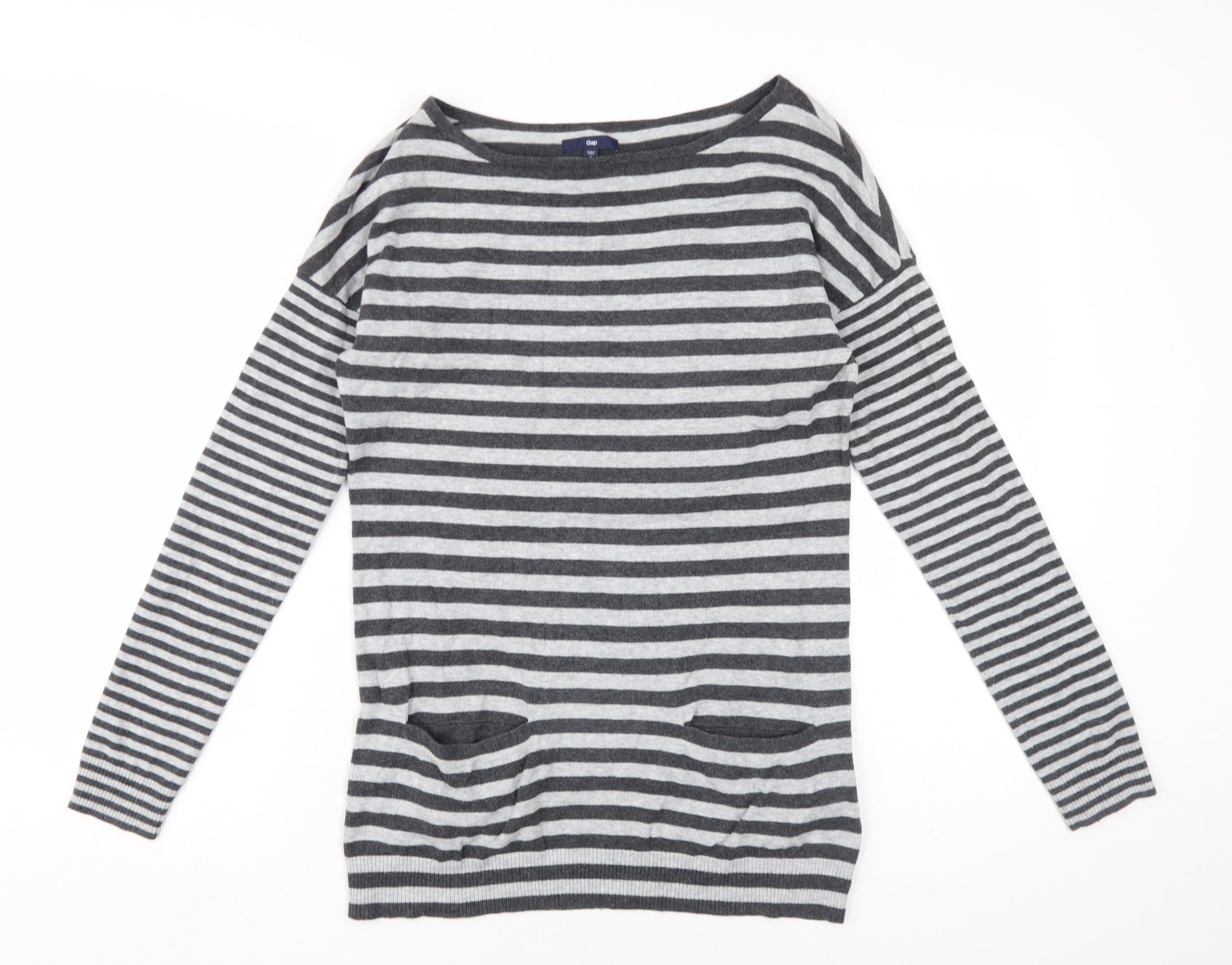 Gap Women's Grey Striped Pullover Jumper, Size 10