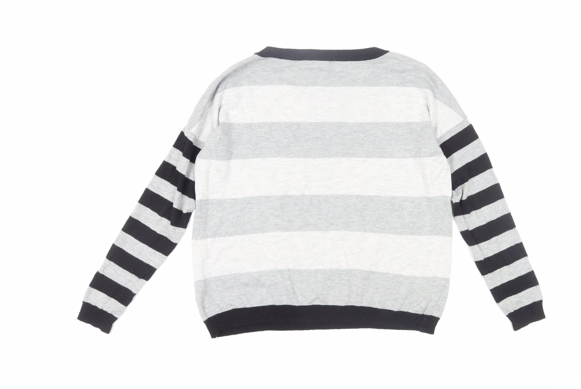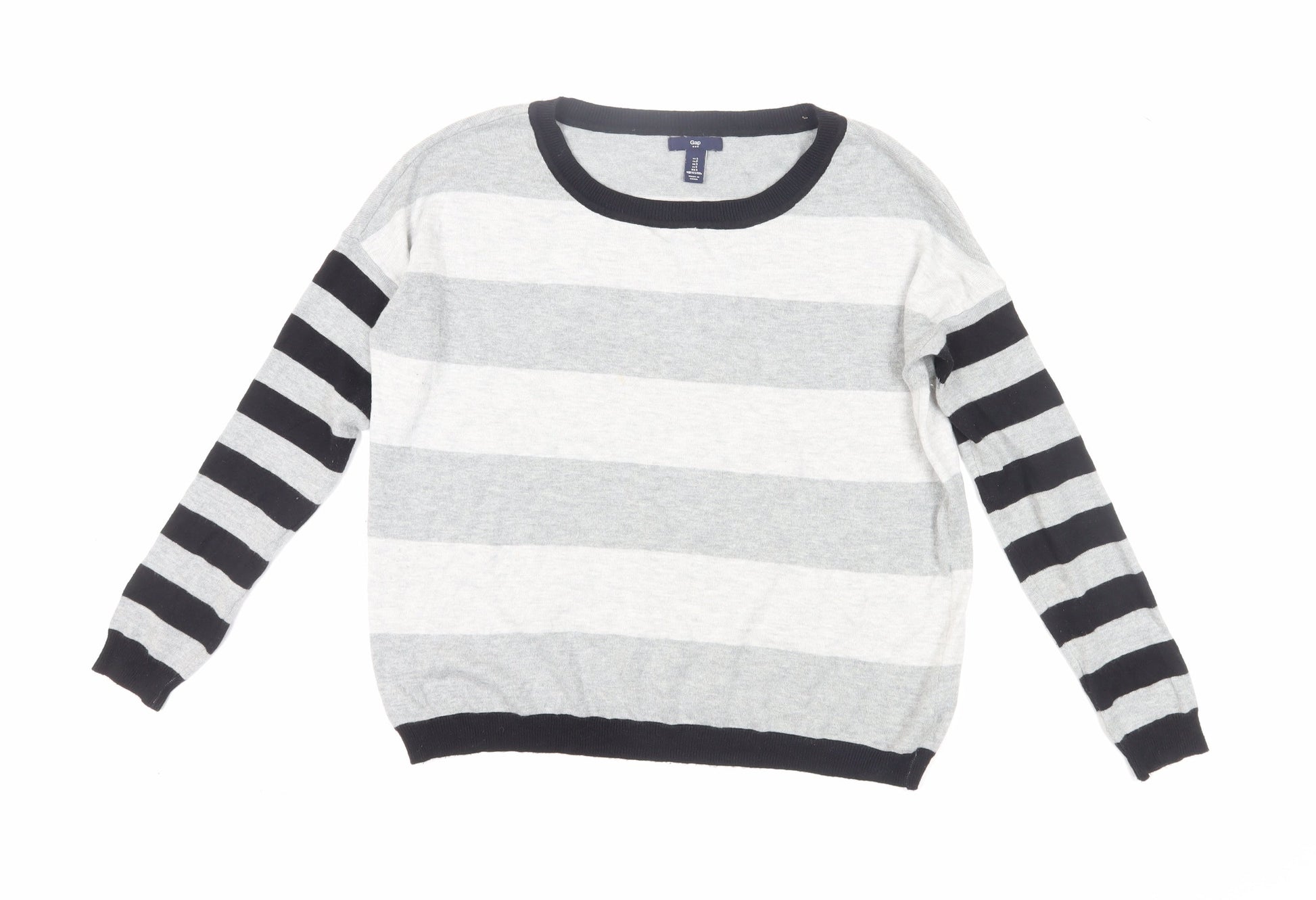 Gap Women's Grey Striped Pullover Jumper, Size S