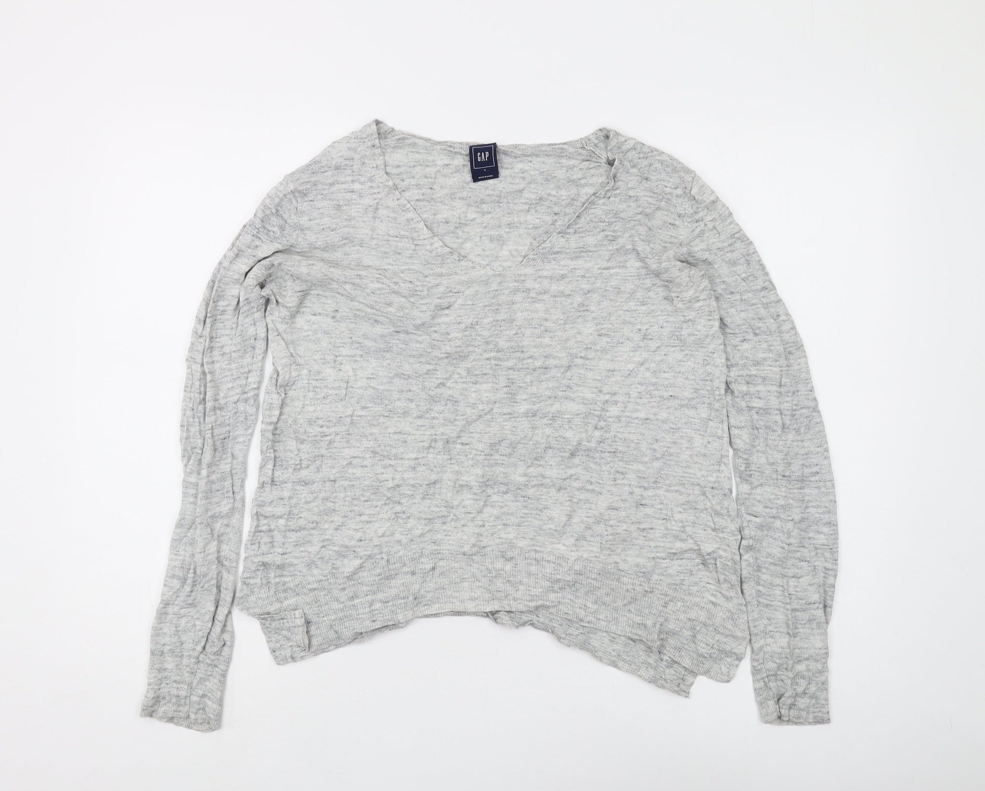 Gap Women's Grey V-Neck Cotton Pullover Jumper