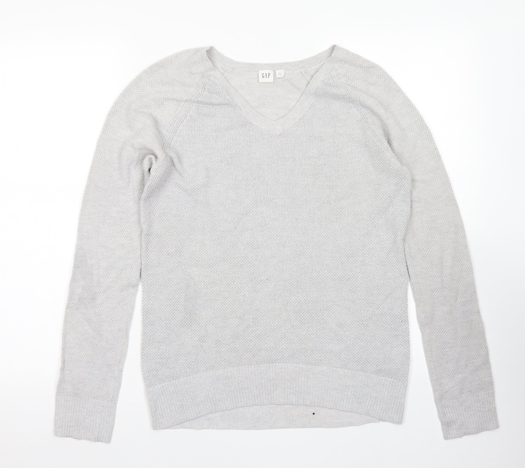 Gap Womens Grey V-Neck Cotton Pullover Jumper Size S