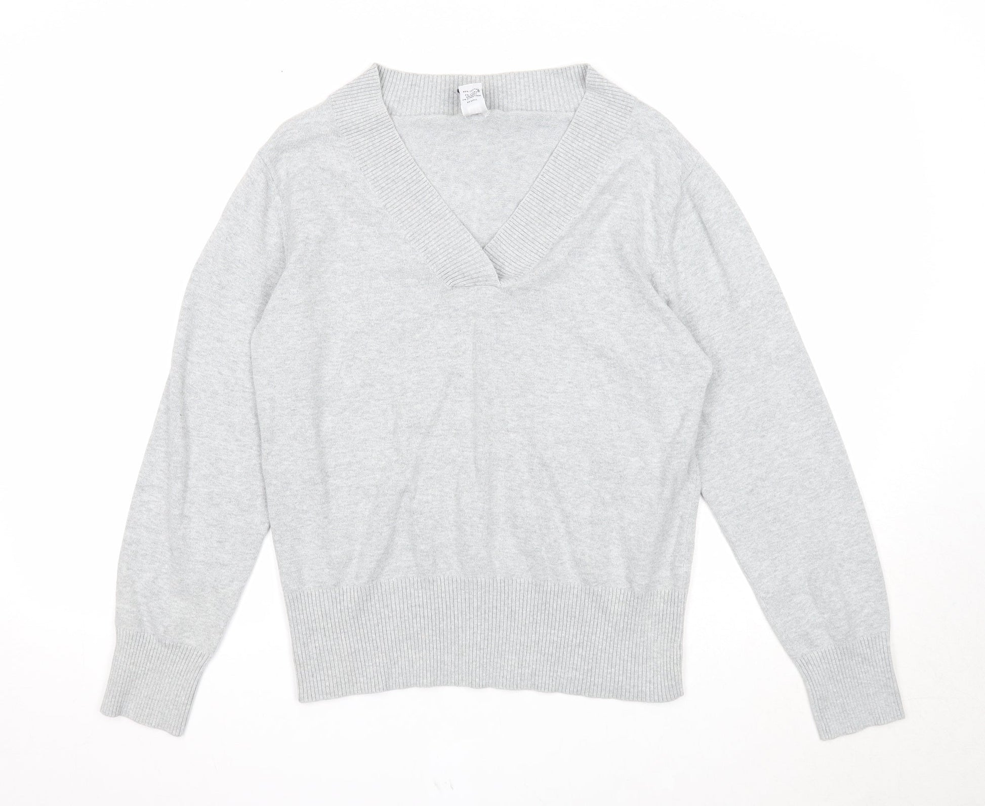 Gap Womens Grey V-Neck Cotton Pullover Jumper Size XL