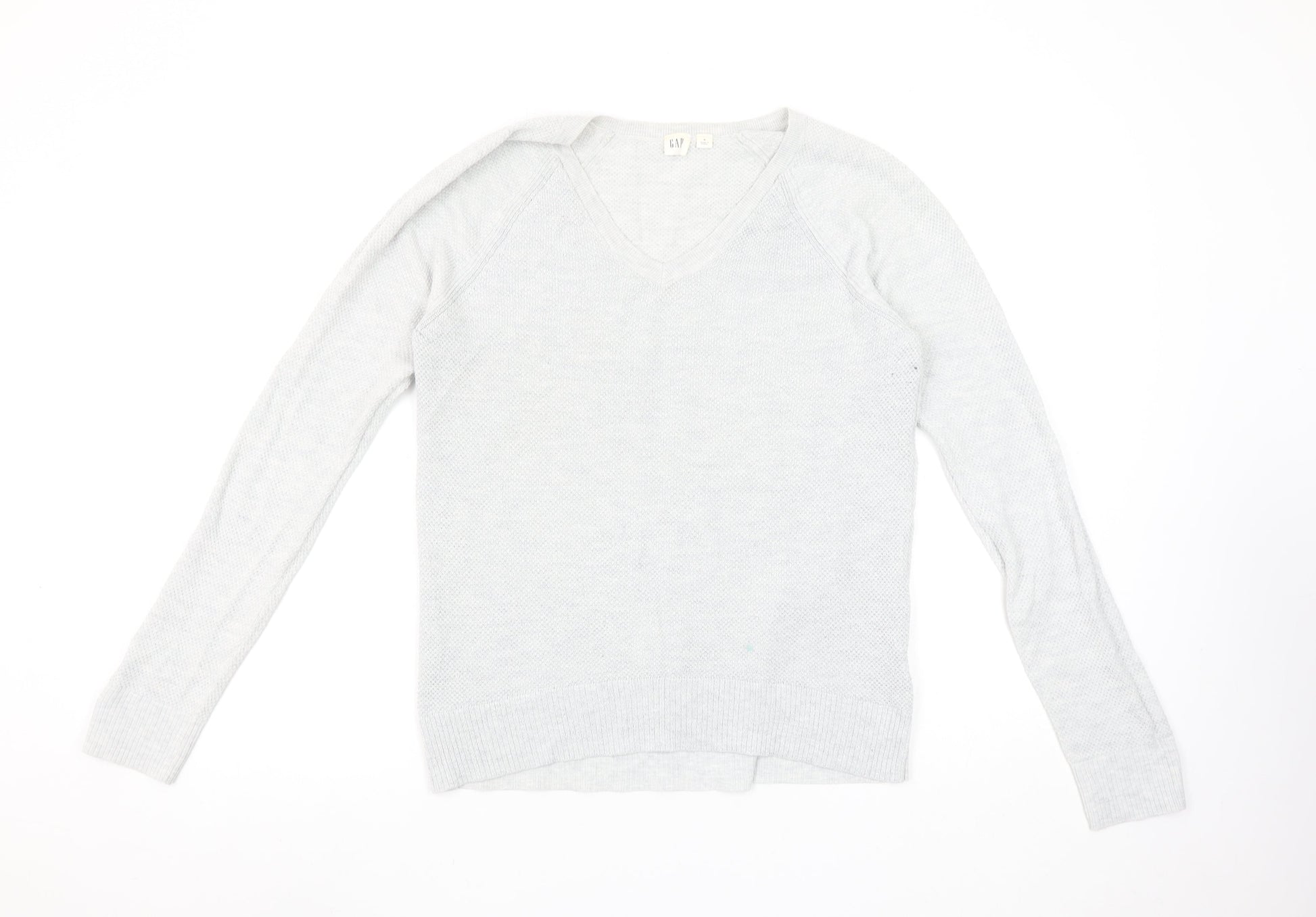 GAP Women's Grey V-Neck Knit Jumper Medium Long Sleeve