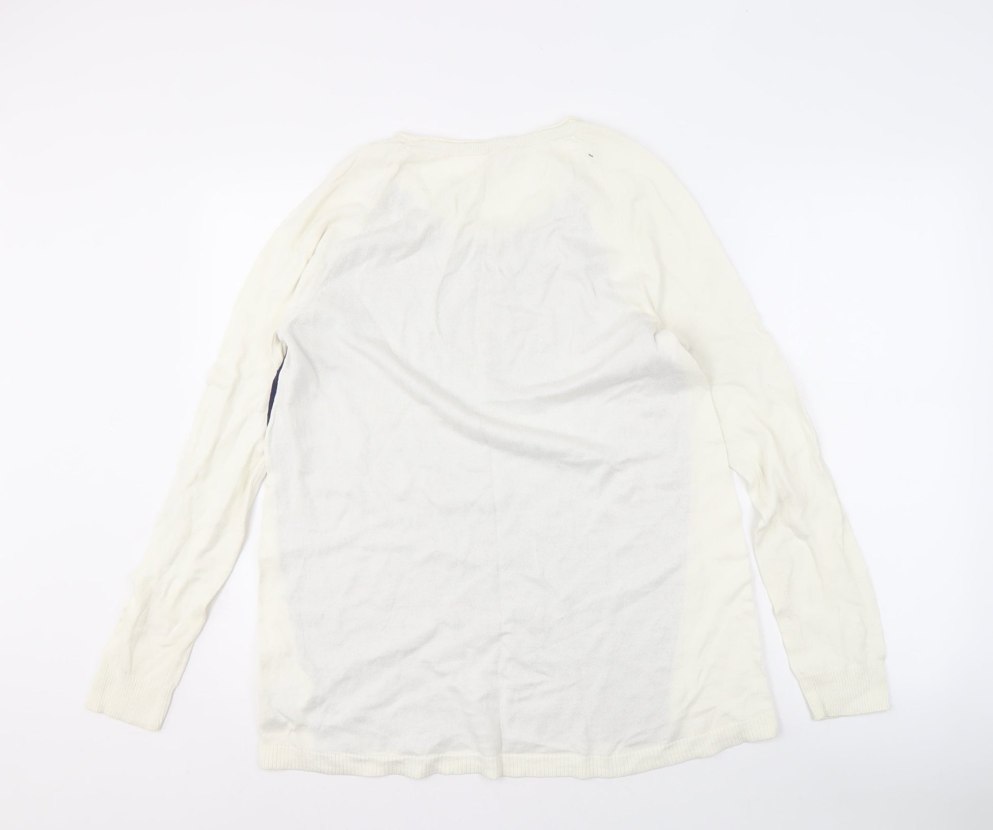 Gap Women's Ivory & Blue Cotton Raglan Jumper L