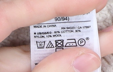 - Material Breakdown: 60% Cotton 30% Nylon 10% Wool