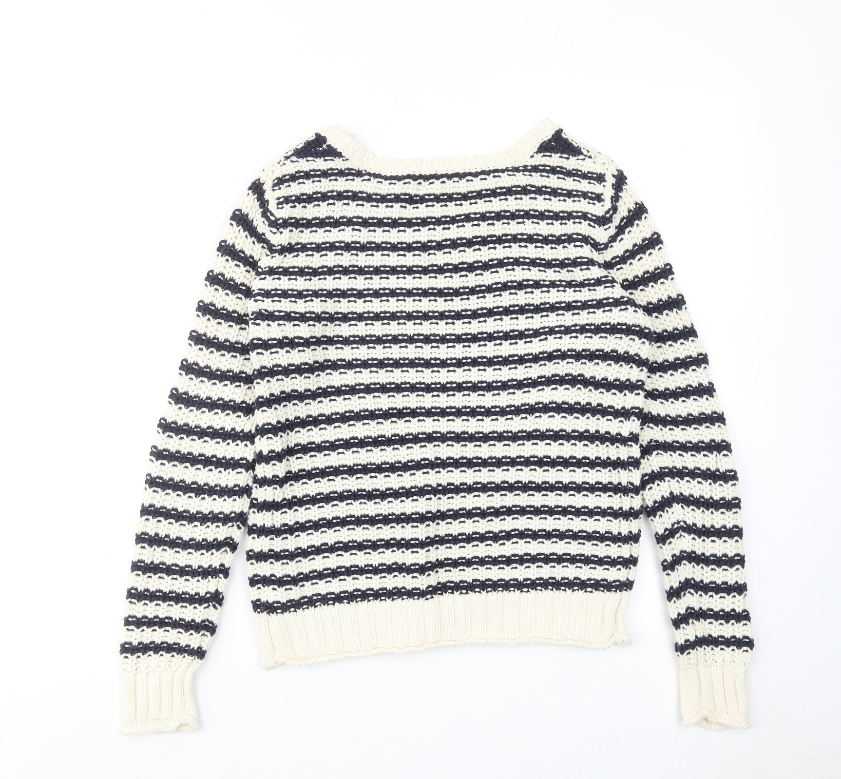 Gap Womens Ivory Round Neck Striped Cotton Pullover Jumper Size XS