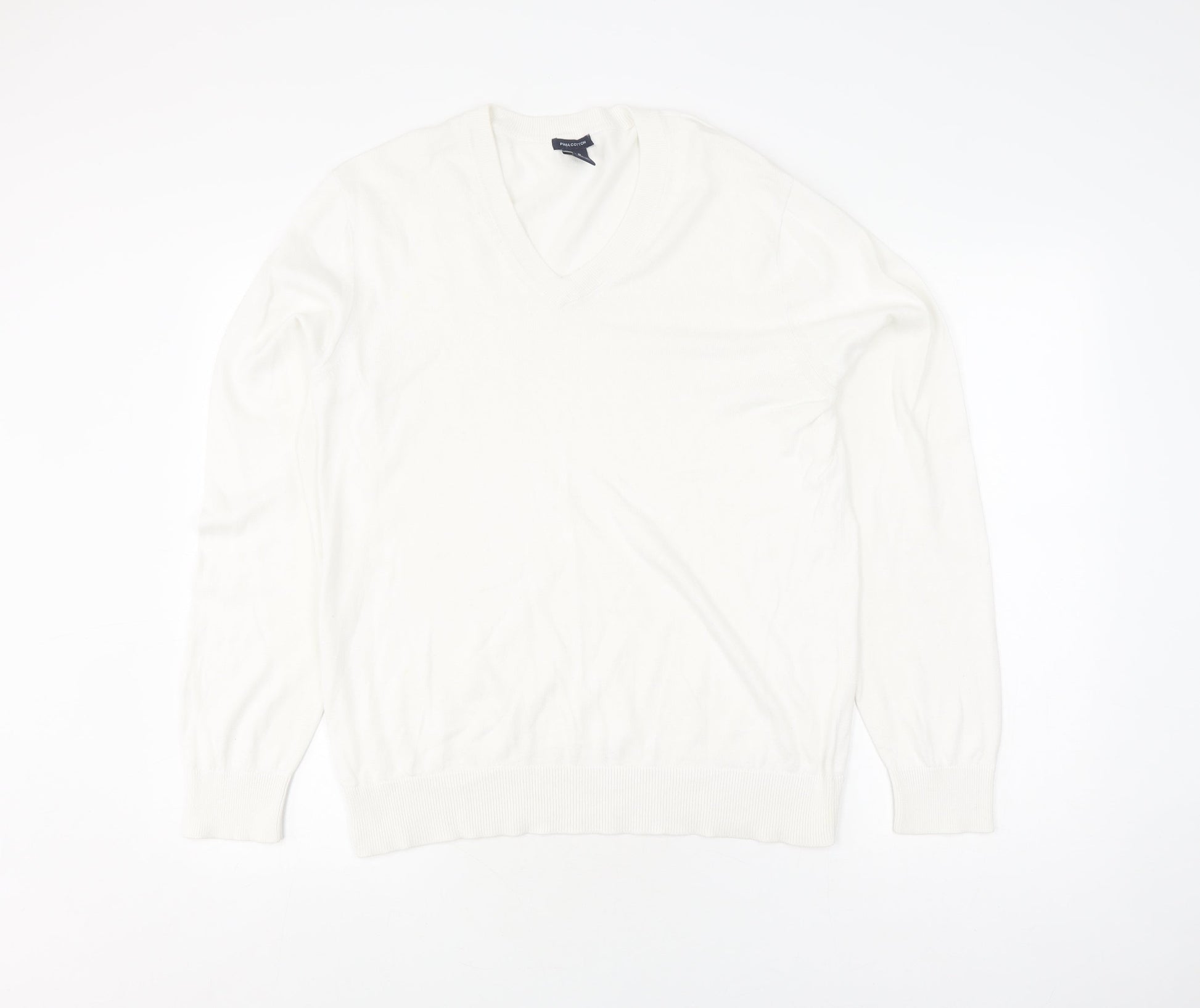 GAP Women's Ivory V-Neck Cotton Pullover Jumper S