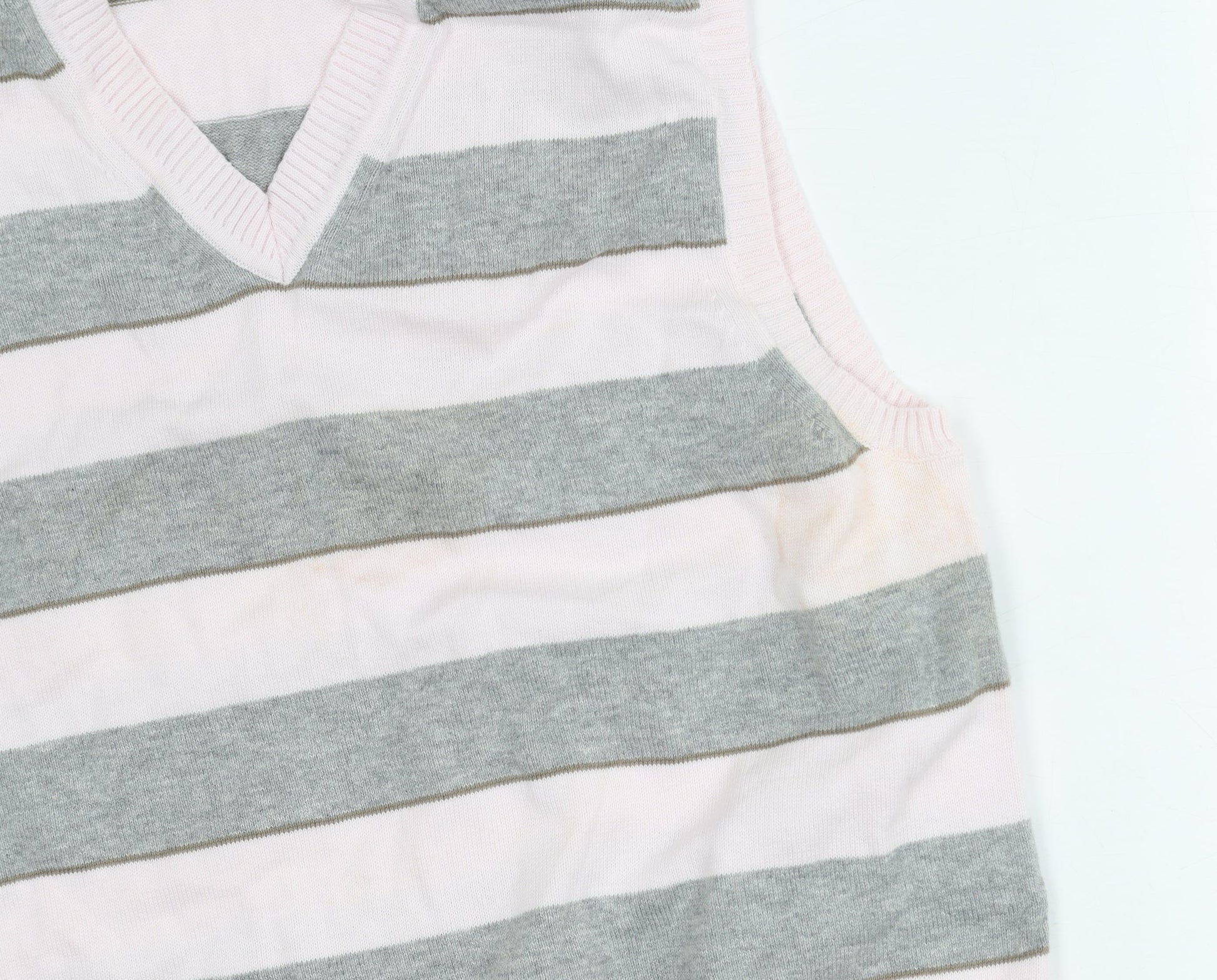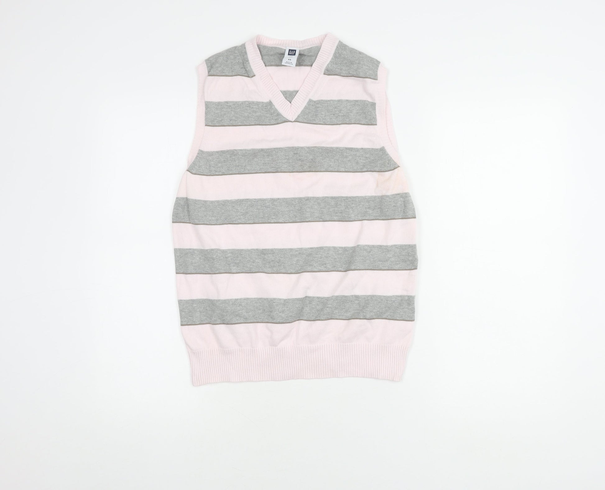 Gap Women's Pink/Grey Striped V-Neck Vest XS