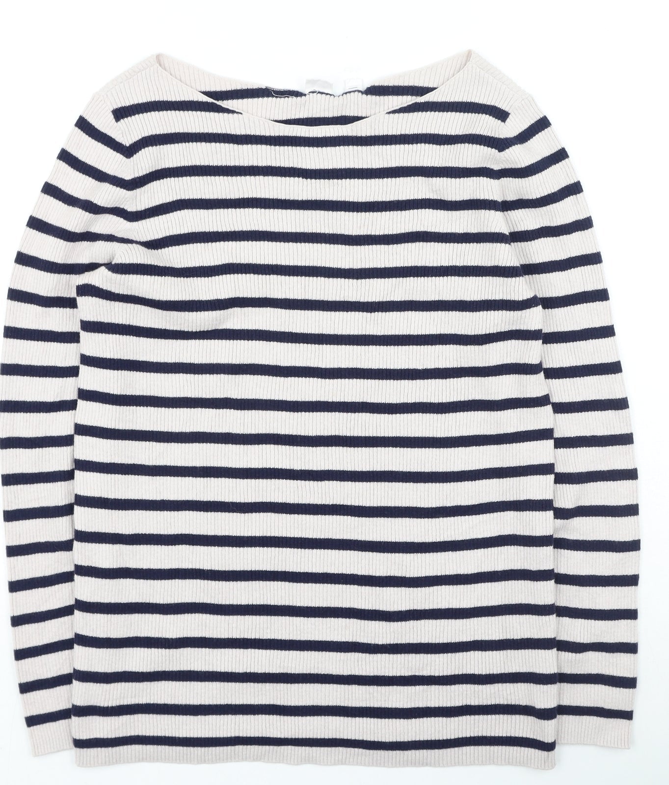 Gap Womens Pink Scoop Neck Striped Cotton Pullover Jumper Size M