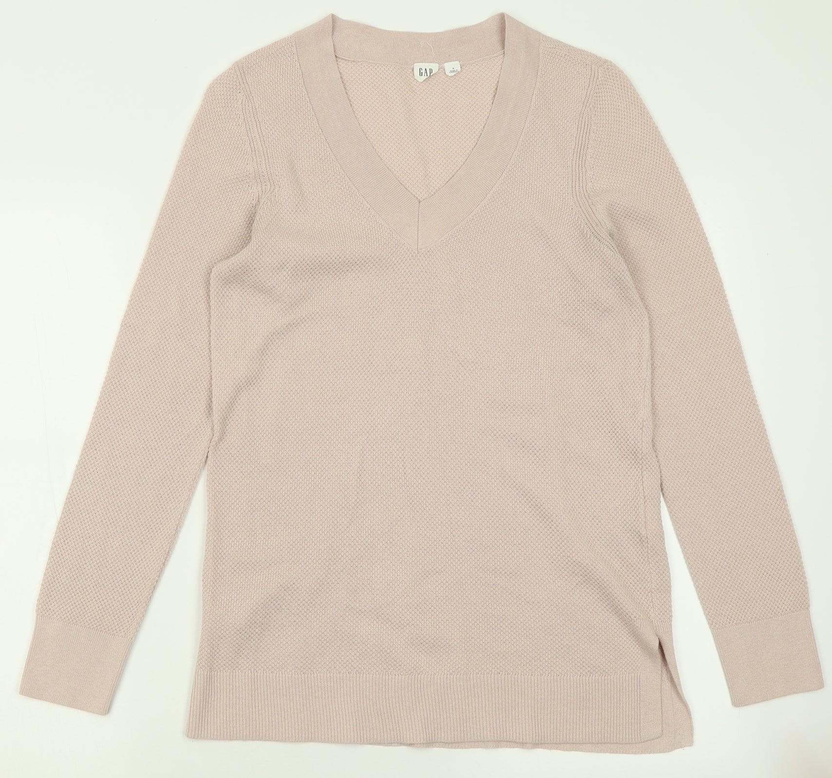 Gap Womens Pink V-Neck Cotton Pullover Jumper Size M
