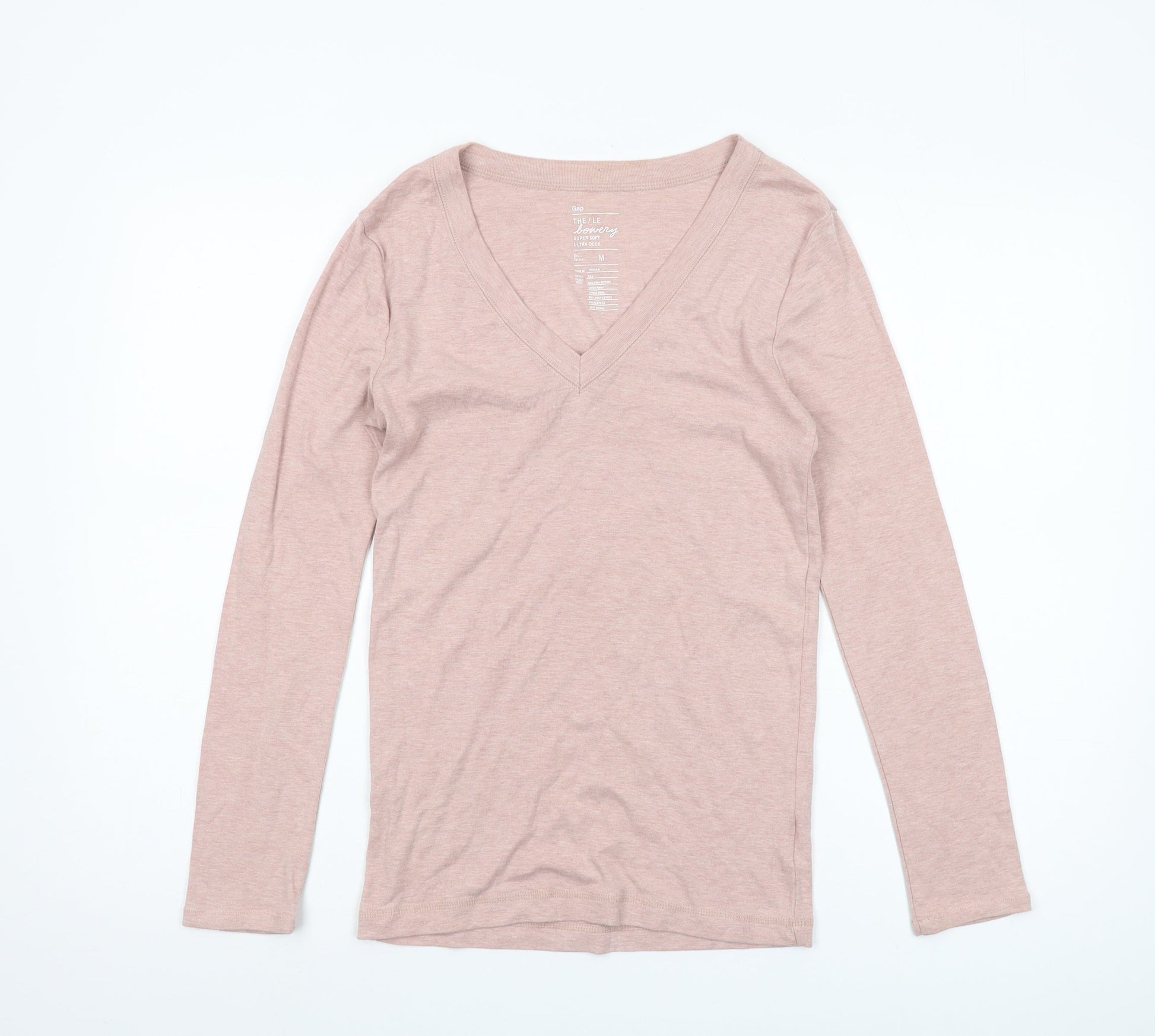 Gap Women's Pink V-Neck Long Sleeve T-Shirt M