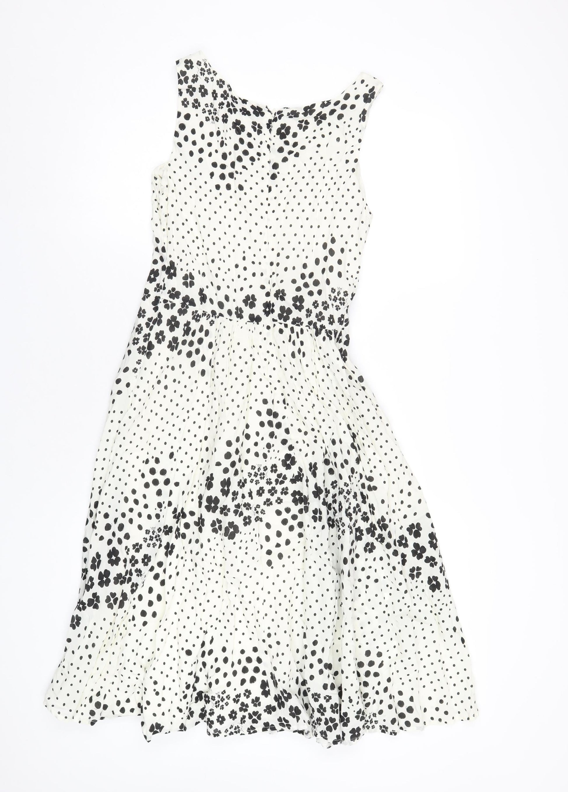 Gap Womens White Geometric Cotton A-Line Size 8 Round Neck Zip