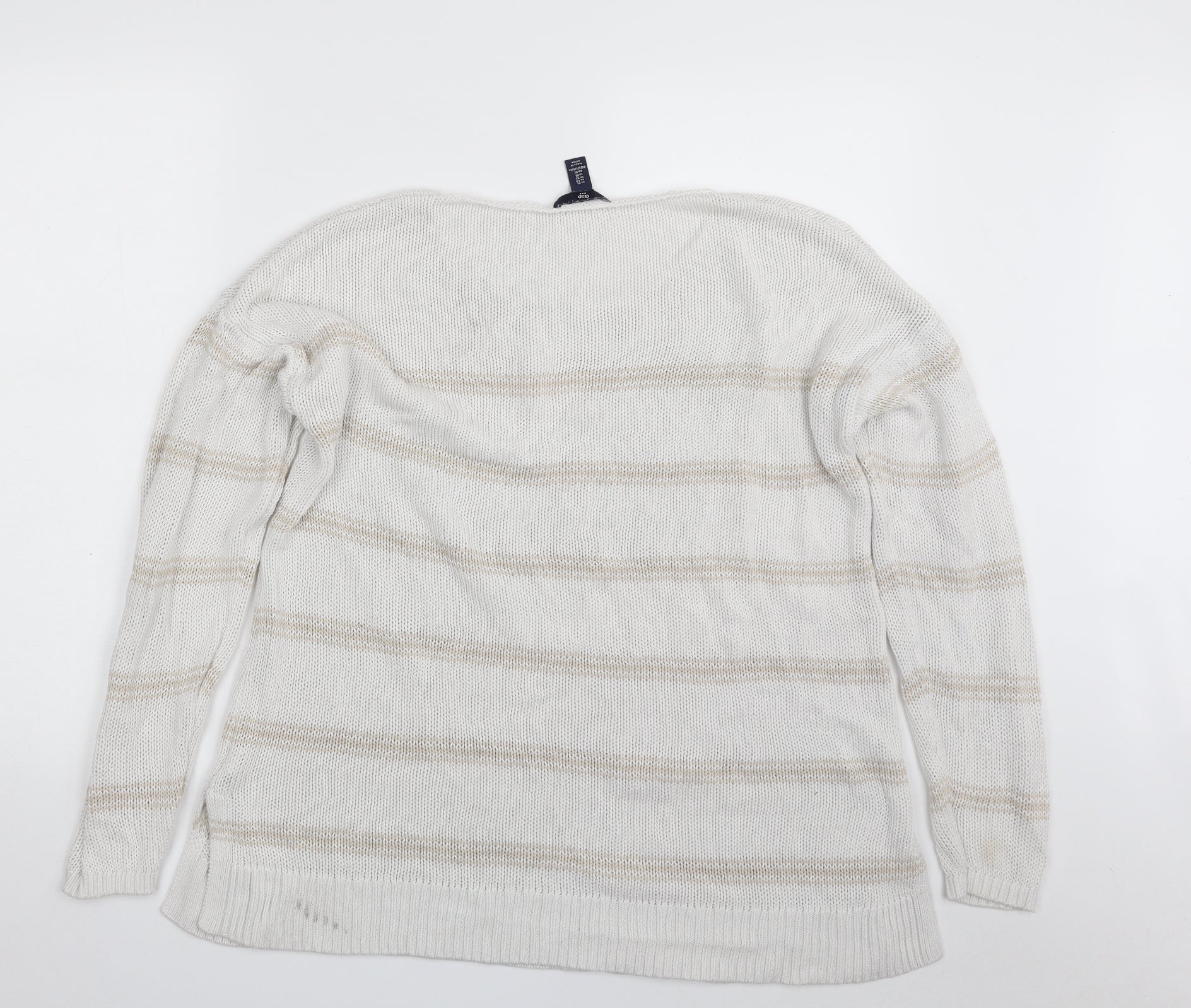 Gap Womens White Round Neck Striped 100% Cotton Pullover Jumper Size XL