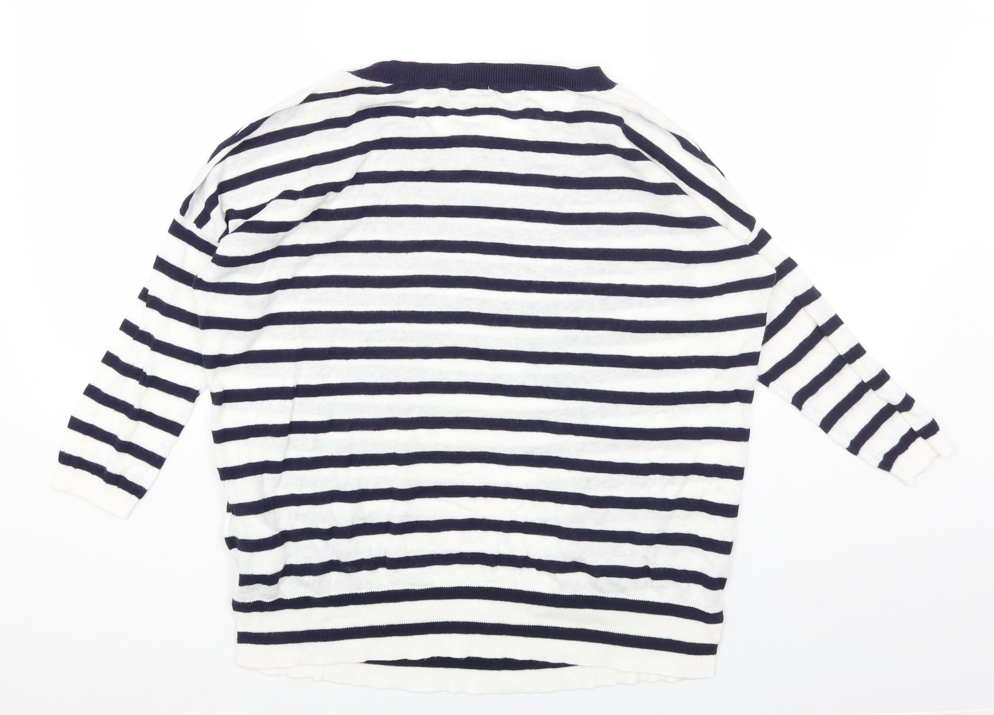 Gap Womens White Round Neck Striped Cotton Pullover Jumper Size XS