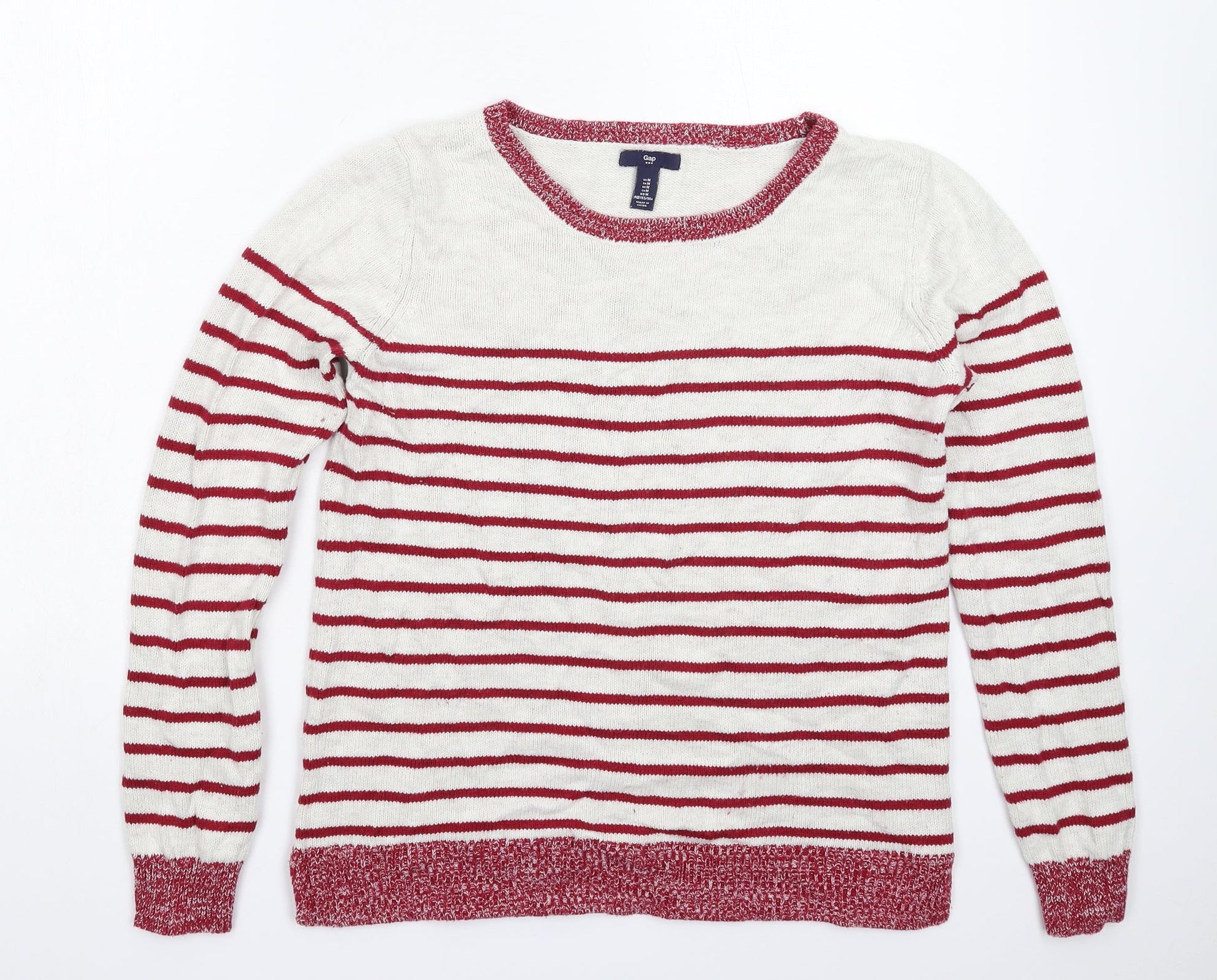 Gap Womens White Striped Knit Pullover Jumper Size M