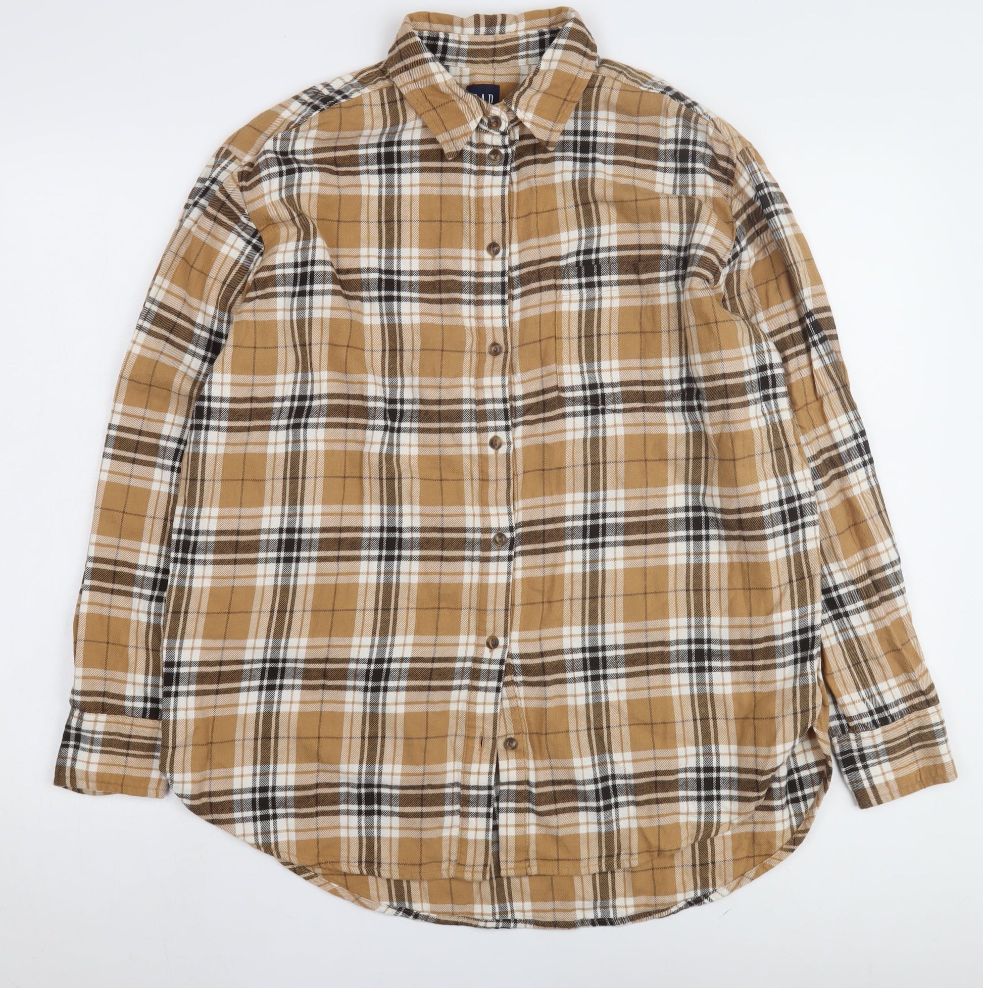 GAP Women's XS Brown Plaid Button-Up Shirt