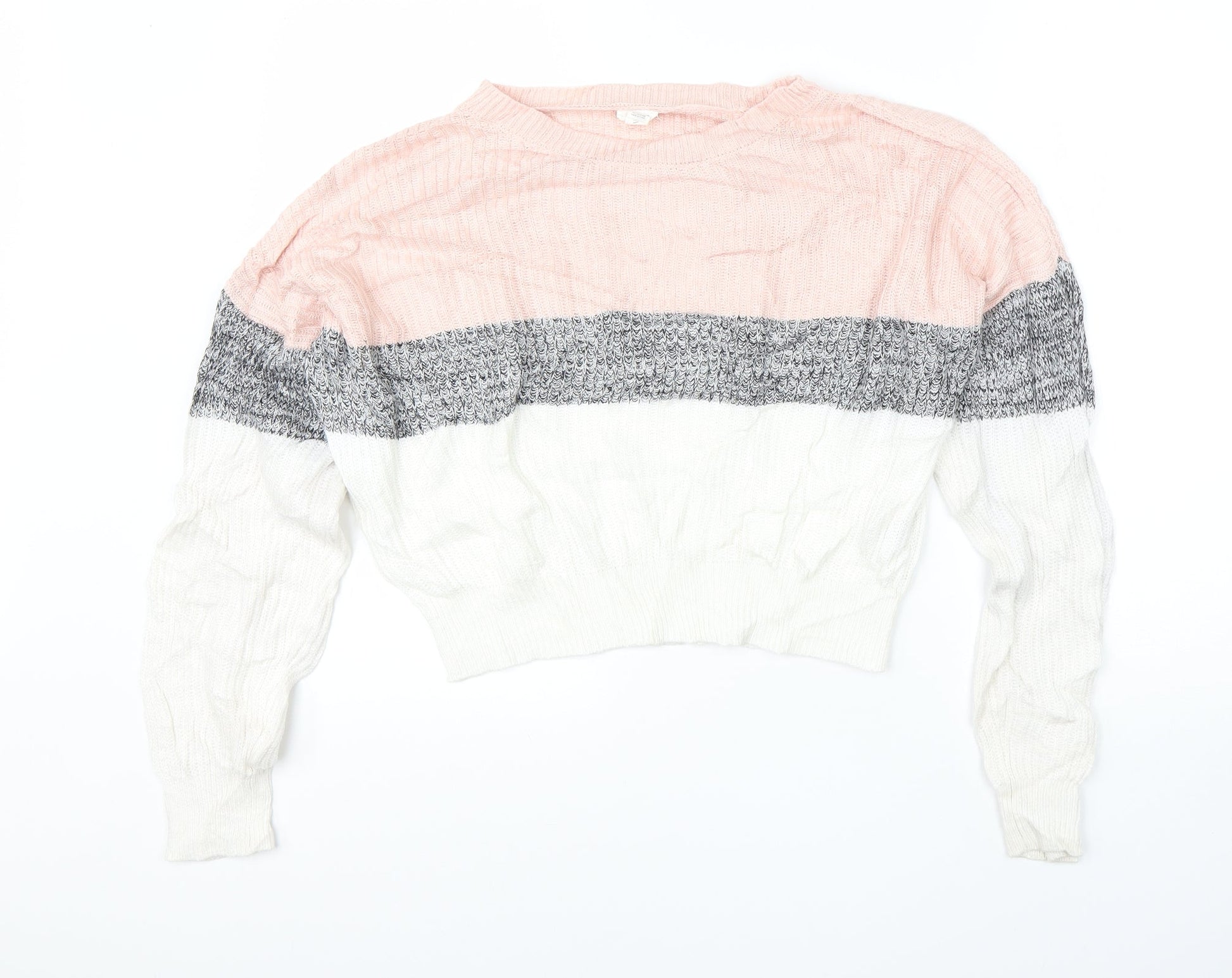 Garage Womens Pink Round Neck Nylon Pullover Jumper Size M