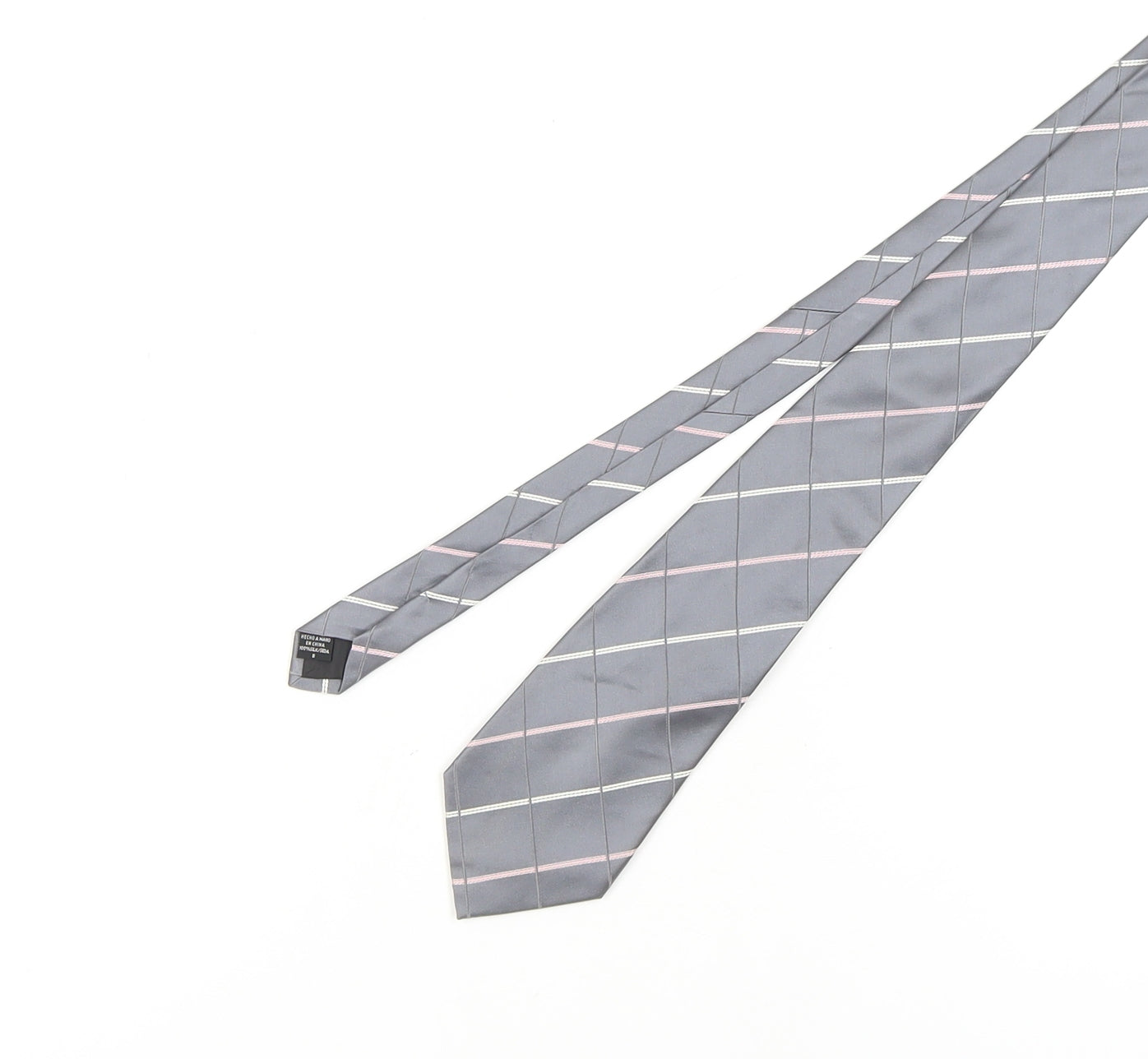 Geoffrey Beene Men's Grey Silk Plaid Handmade Tie