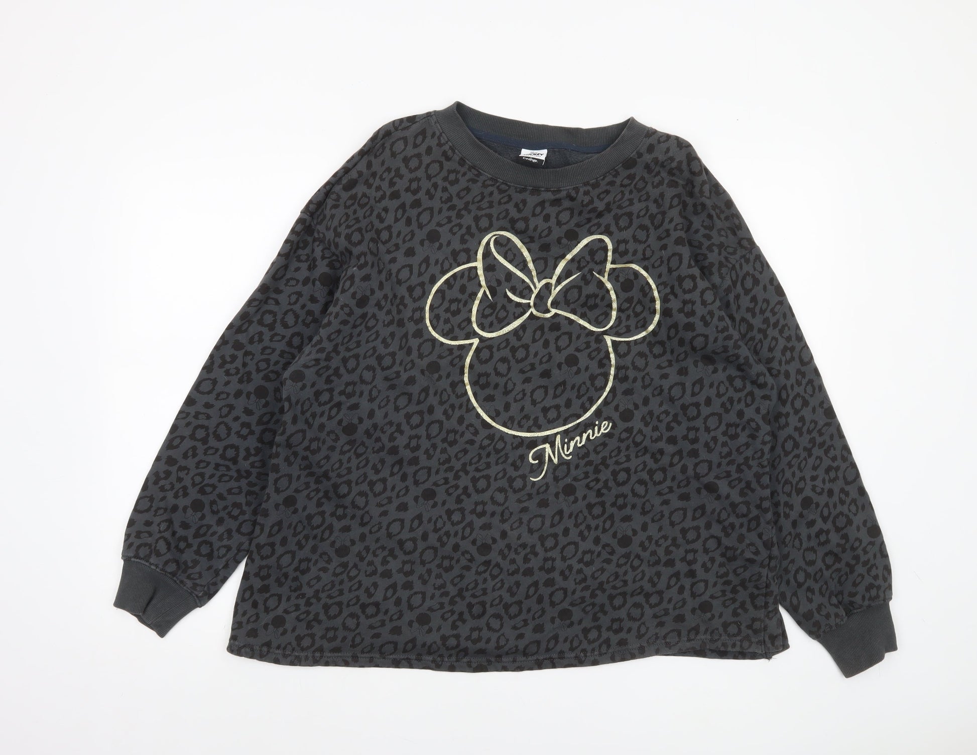 George Disney Minnie Mouse Black Leopard Print Sweatshirt Women L 16-18