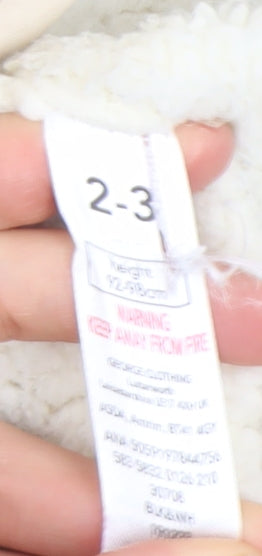 George Girls Beige Black Panda Hooded Rain Coat 2-3 Years Lined Waterproof Jacket