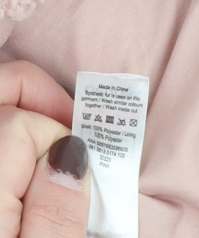 George Girls Pink Teddy Fleece Mid-Length Coat 7-8 Years Button Up