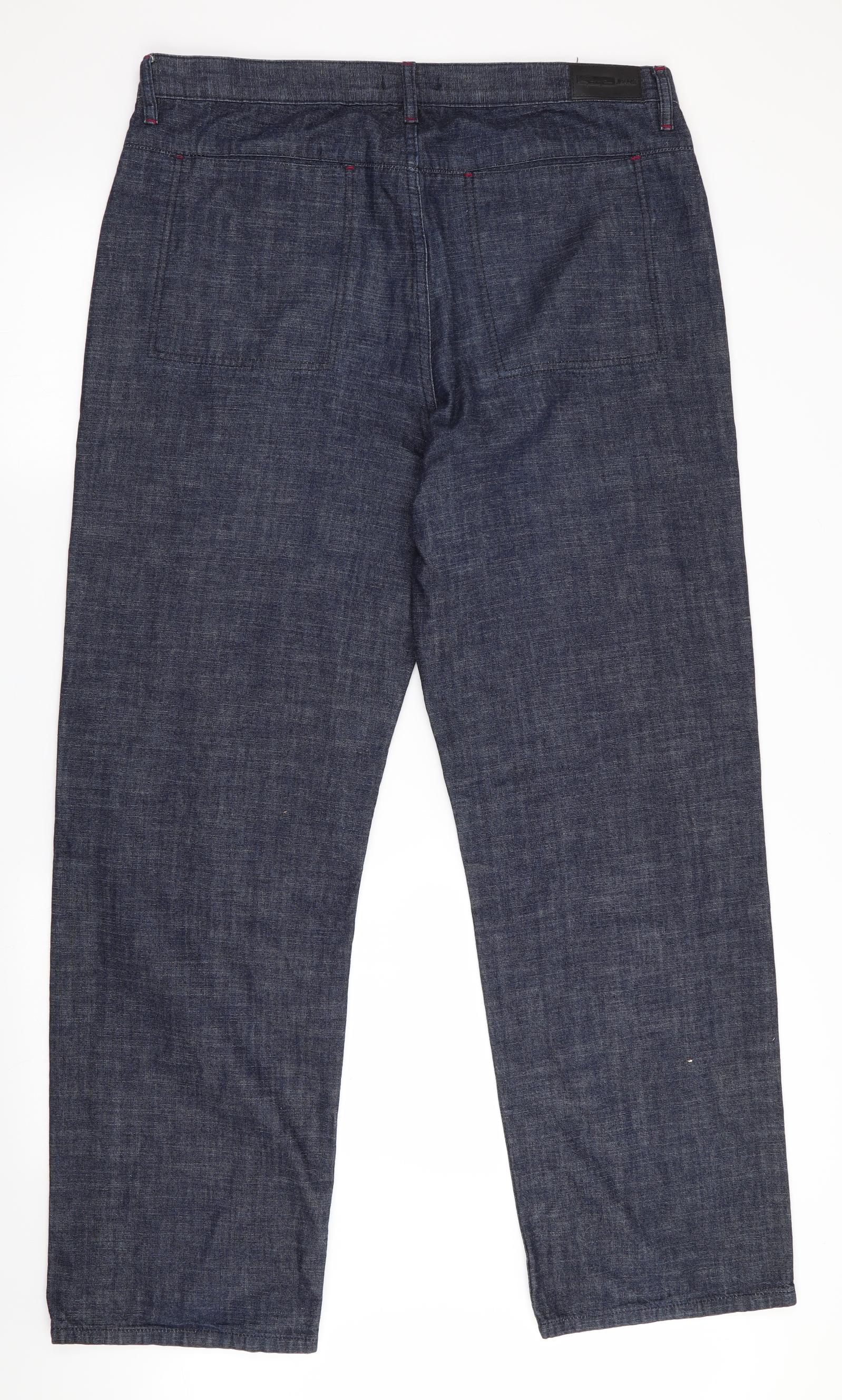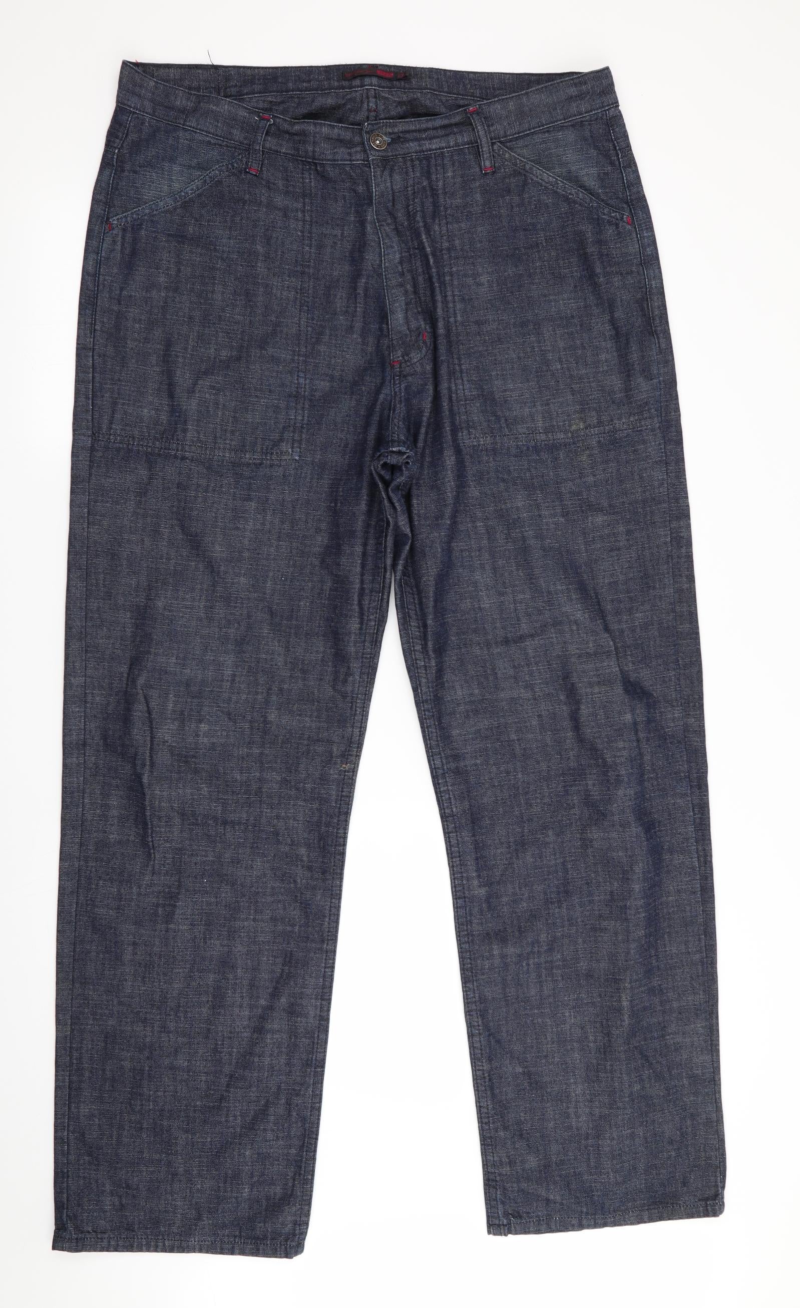 George Man Mens Blue Trousers Size 36 in L31 in - Wide Legged Denim Look