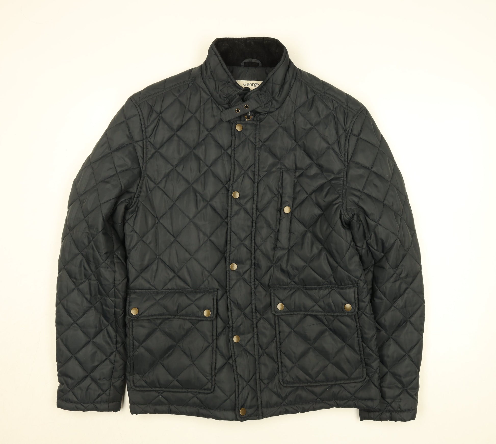 George Men’s Black L Quilted Polyester Jacket with Zip & Button Fastening