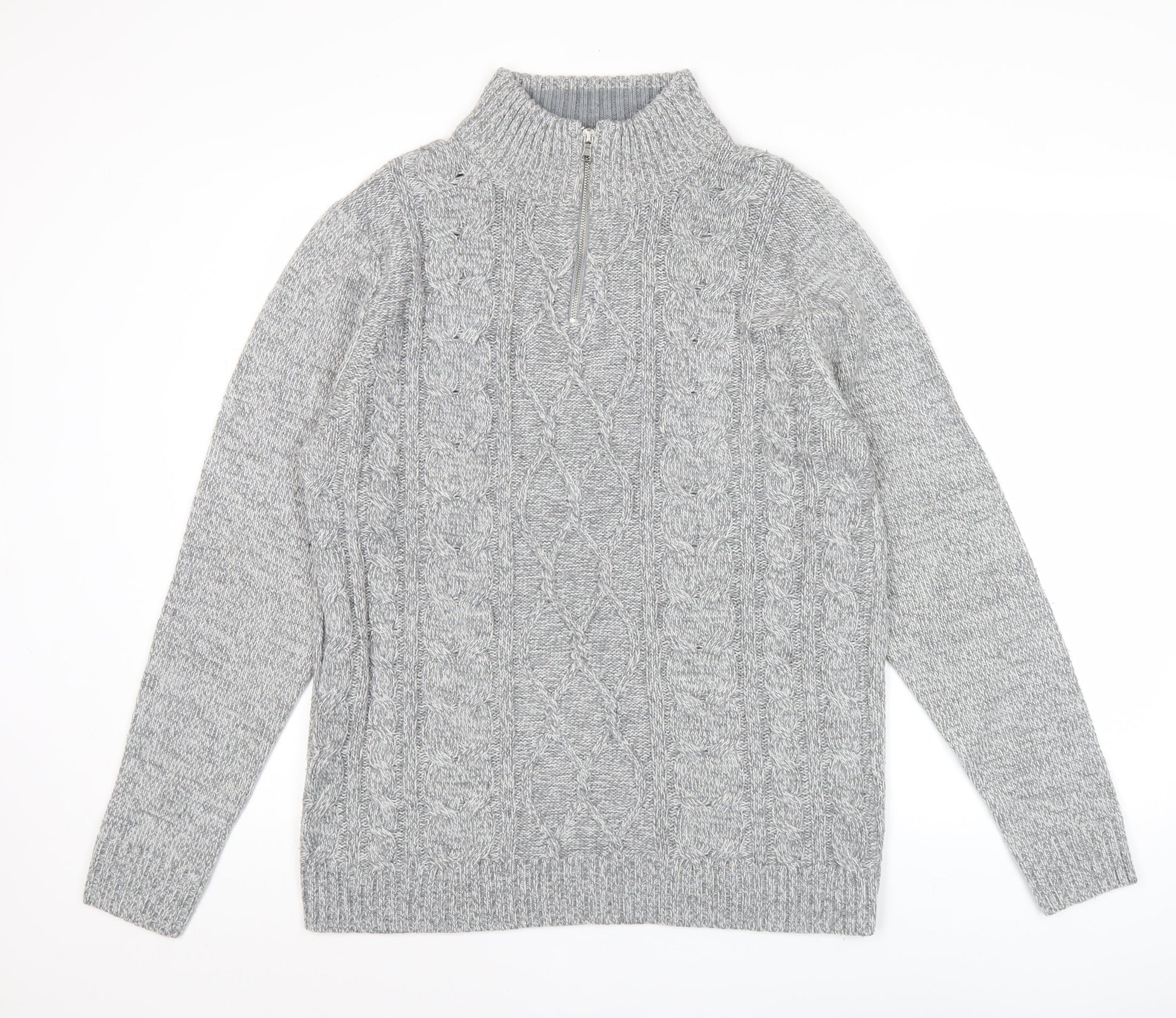 George Men’s Grey Cable Knit 1/2 Zip Jumper L Regular Fit