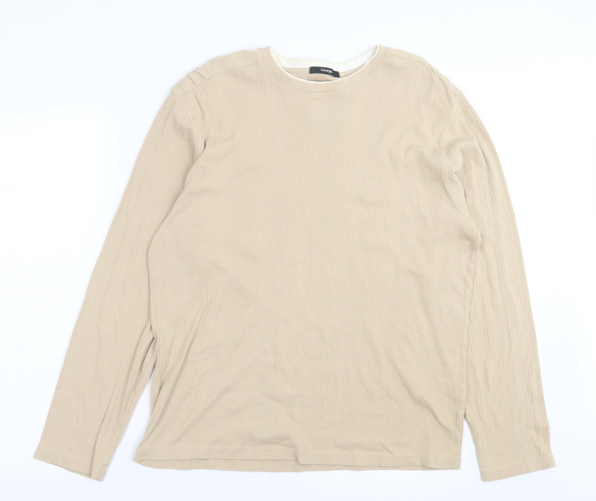 George Mens Beige Cotton T-Shirt Size M Crew Neck