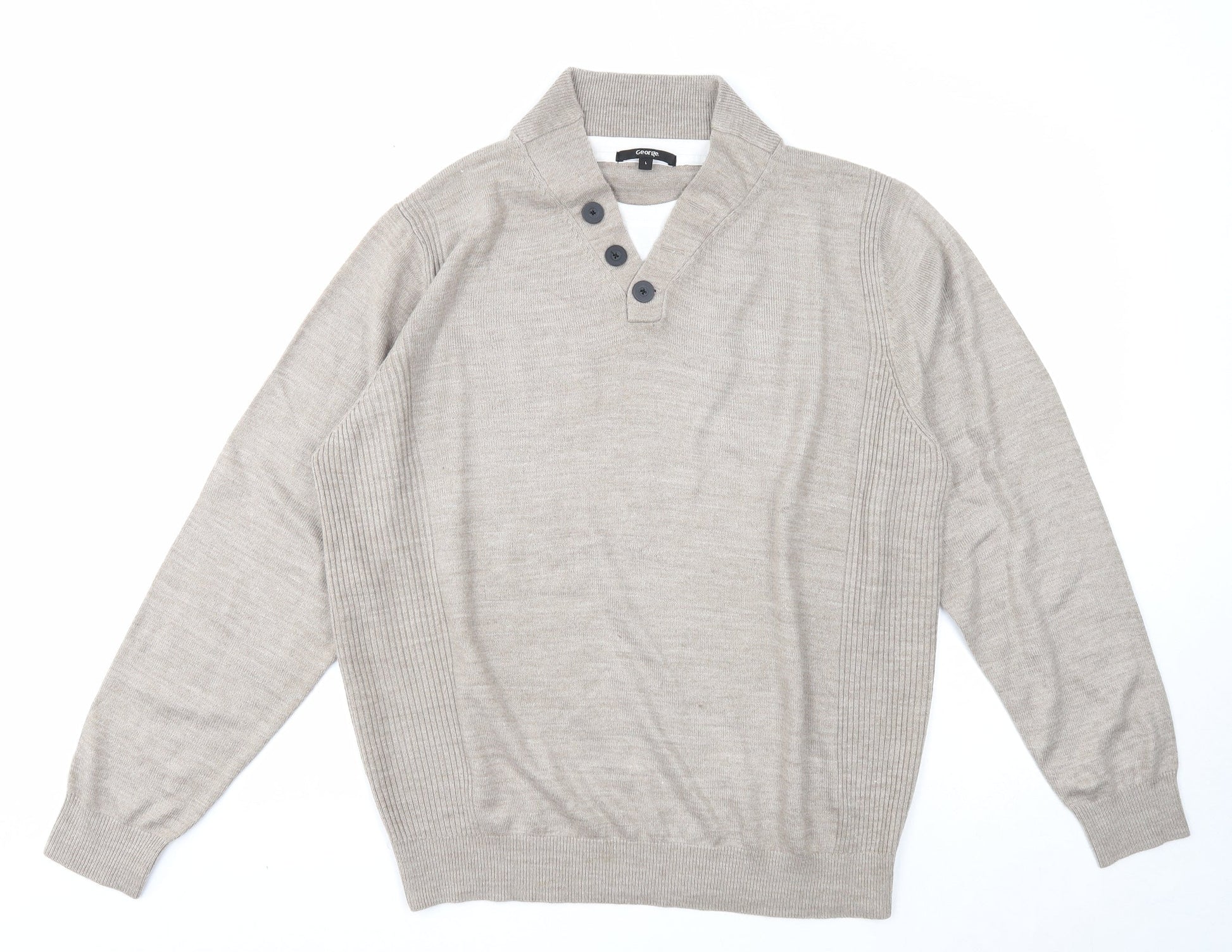 George Mens Beige V-Neck Acrylic Pullover Jumper Size L Long Sleeve