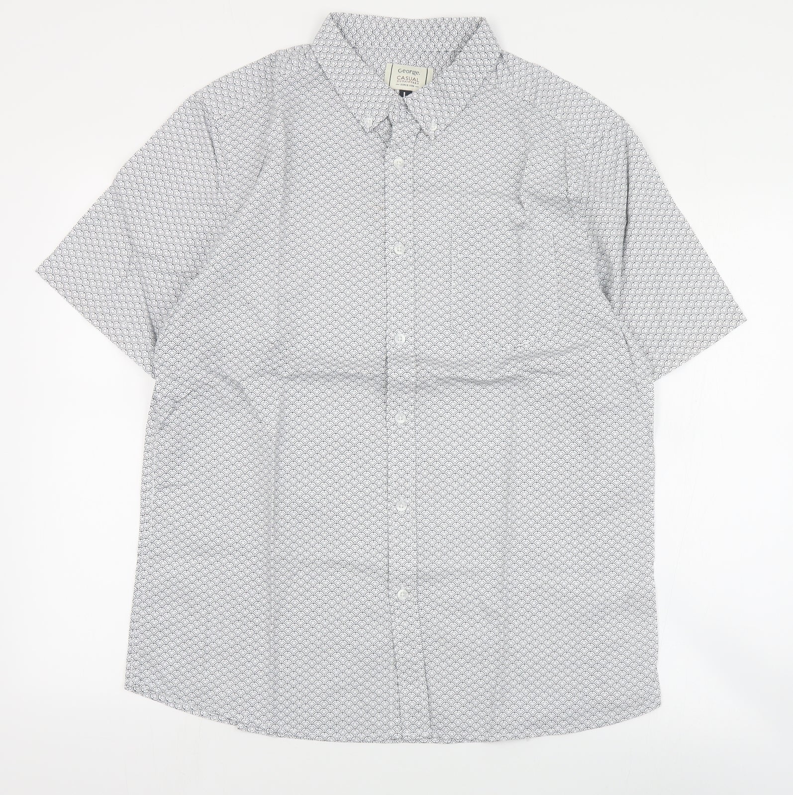 George Mens Black Geometric Cotton Button-Up Size L Collared Button