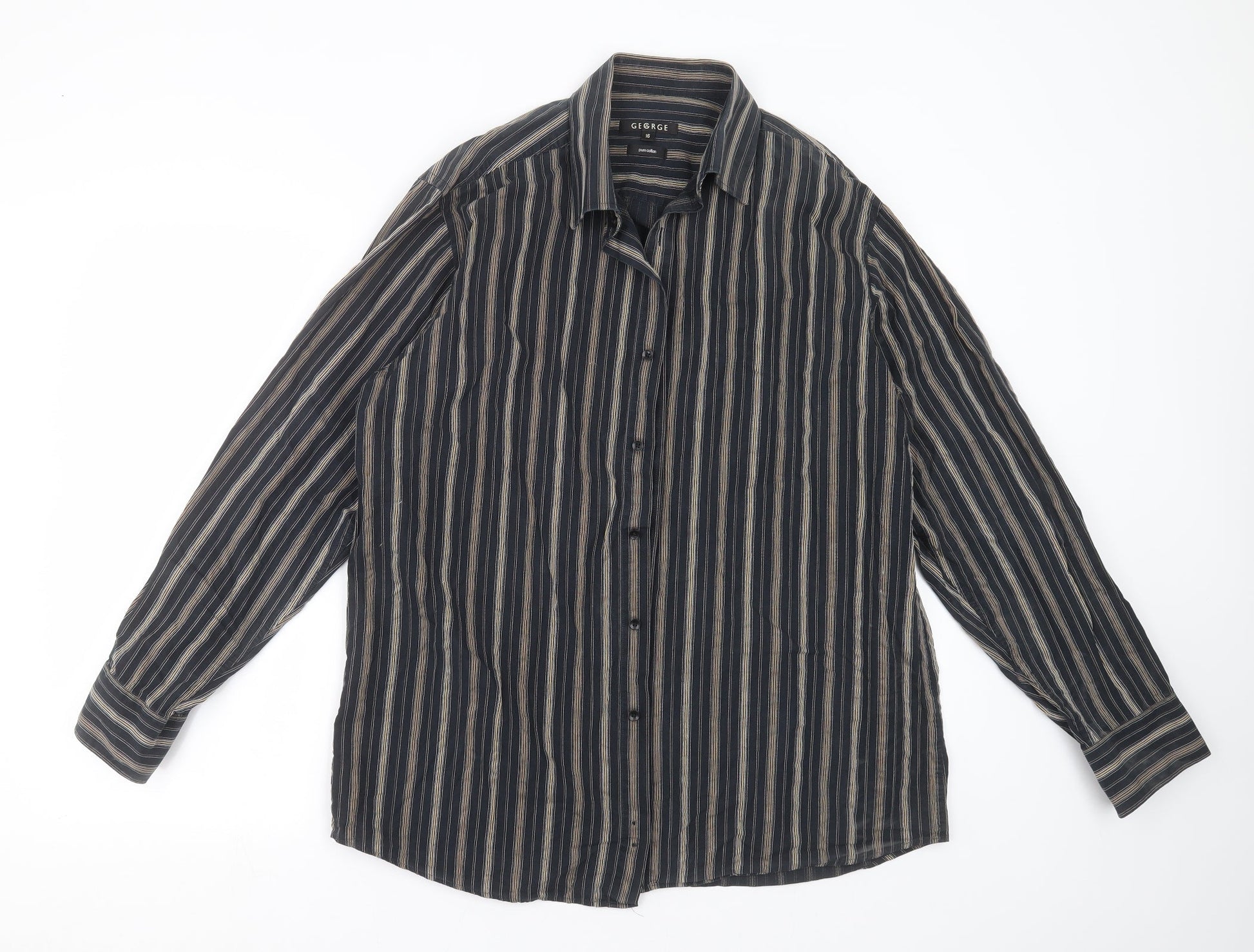 George Mens Black Striped Button-Up Size 16