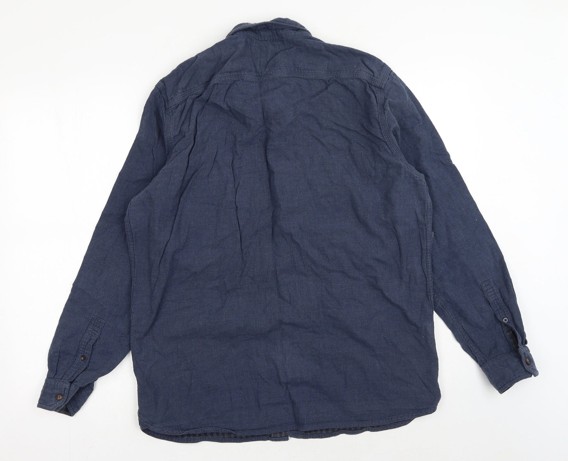 George Mens Blue Cotton Button-Up Size L Collared Button
