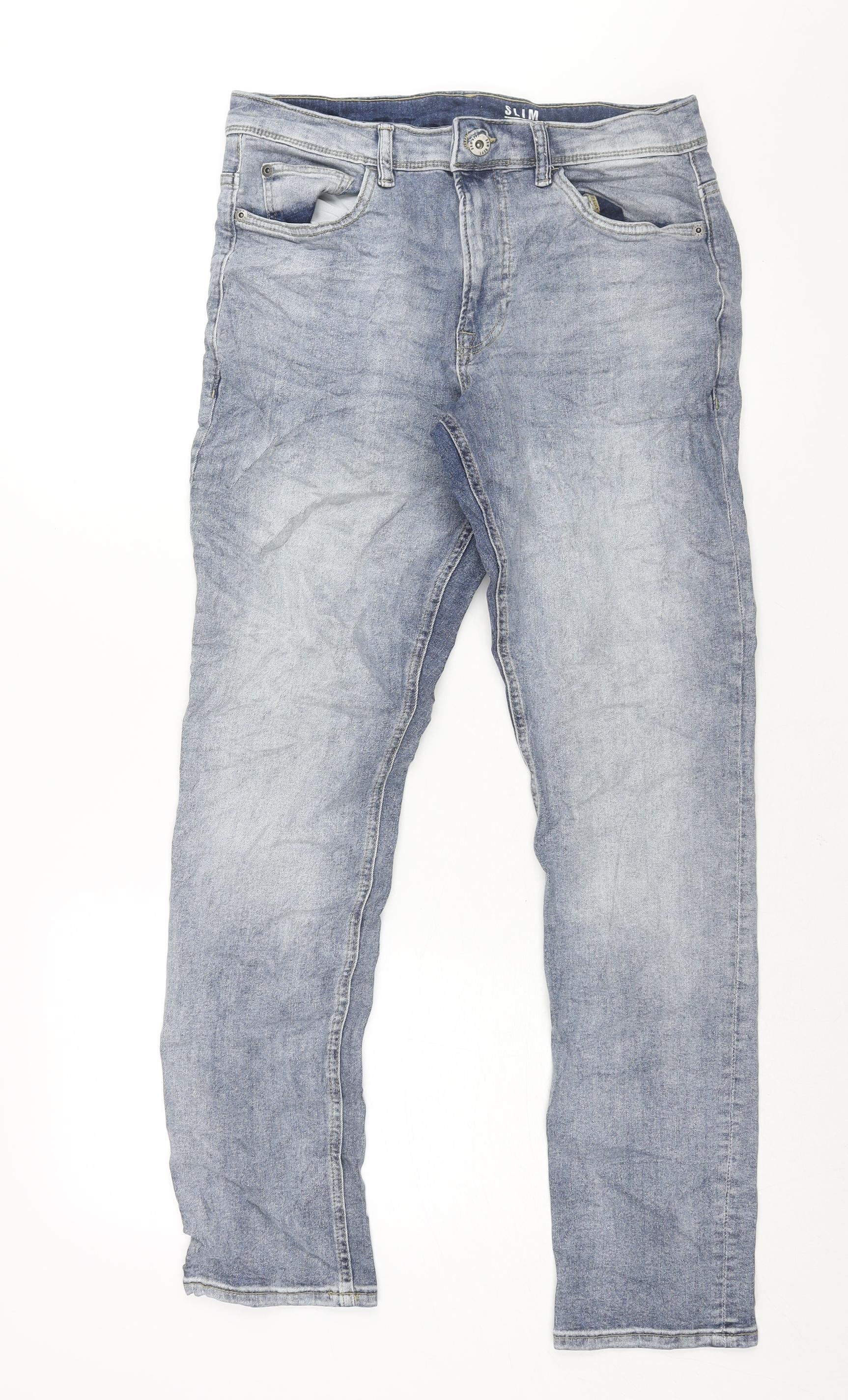George Mens Blue Cotton Straight Jeans Size 32 in L32 in Regular Zip