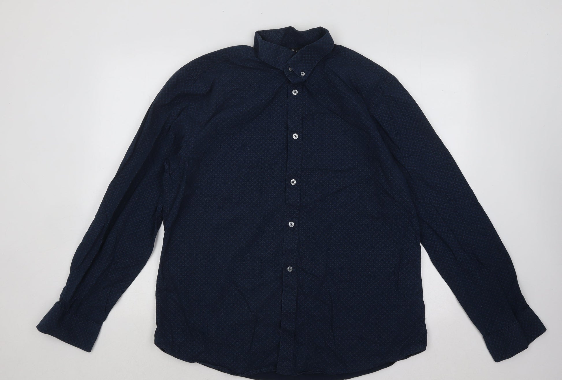 George Mens Blue Geometric Cotton Button-Up Size 16.5 Collared Button