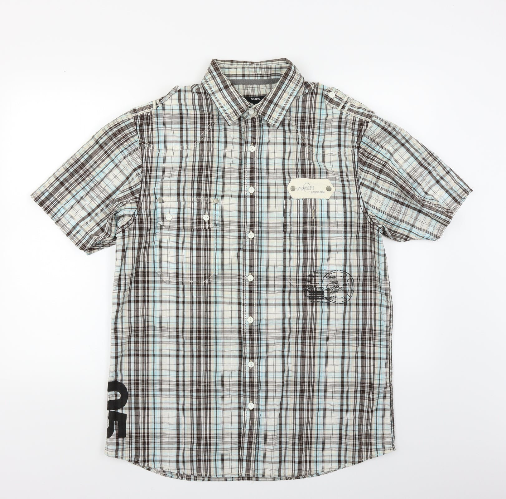 George Mens Blue Plaid Button-Up Size M