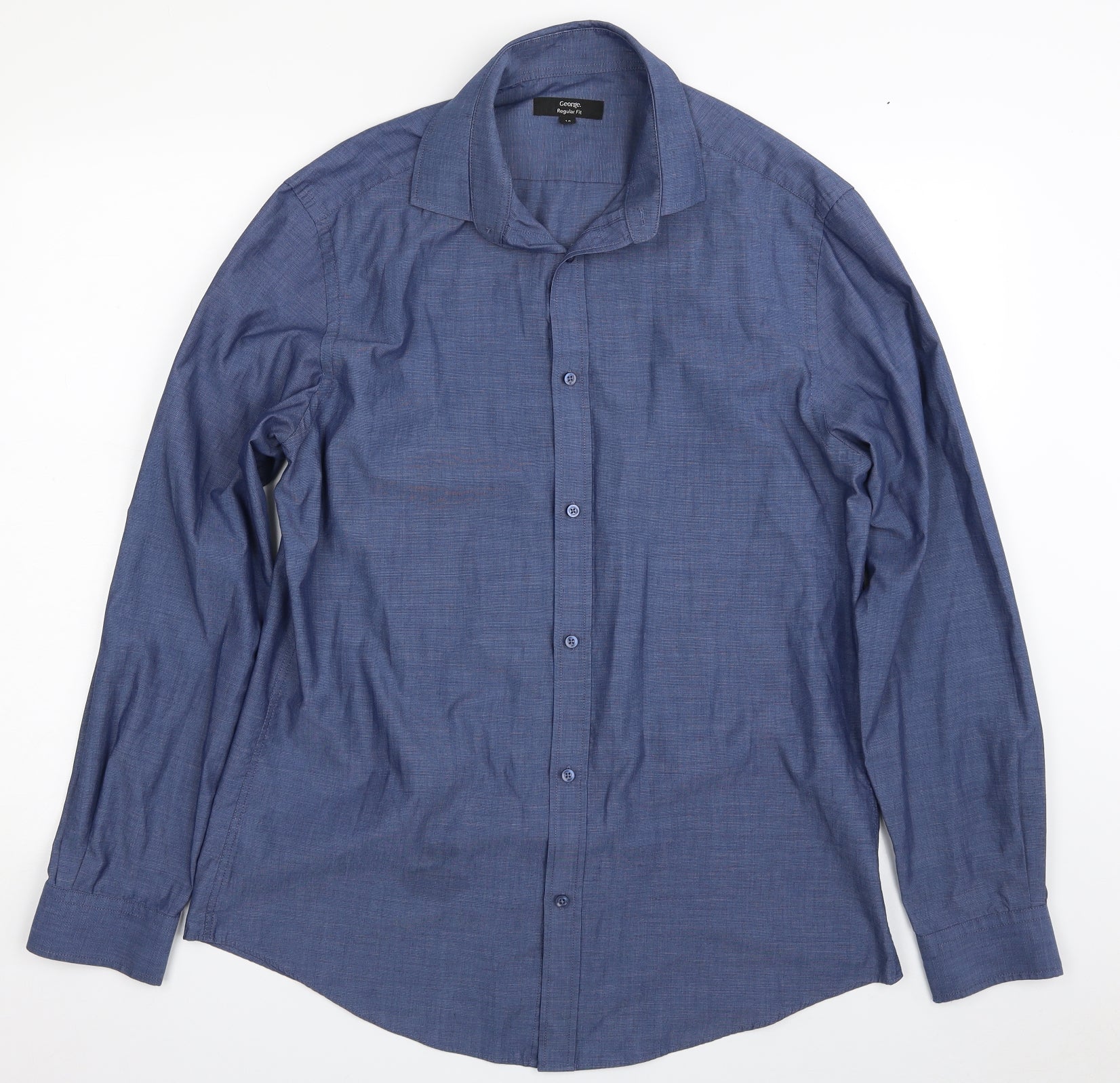 George Mens Blue Polyester Button-Up Size 16 Collared Button