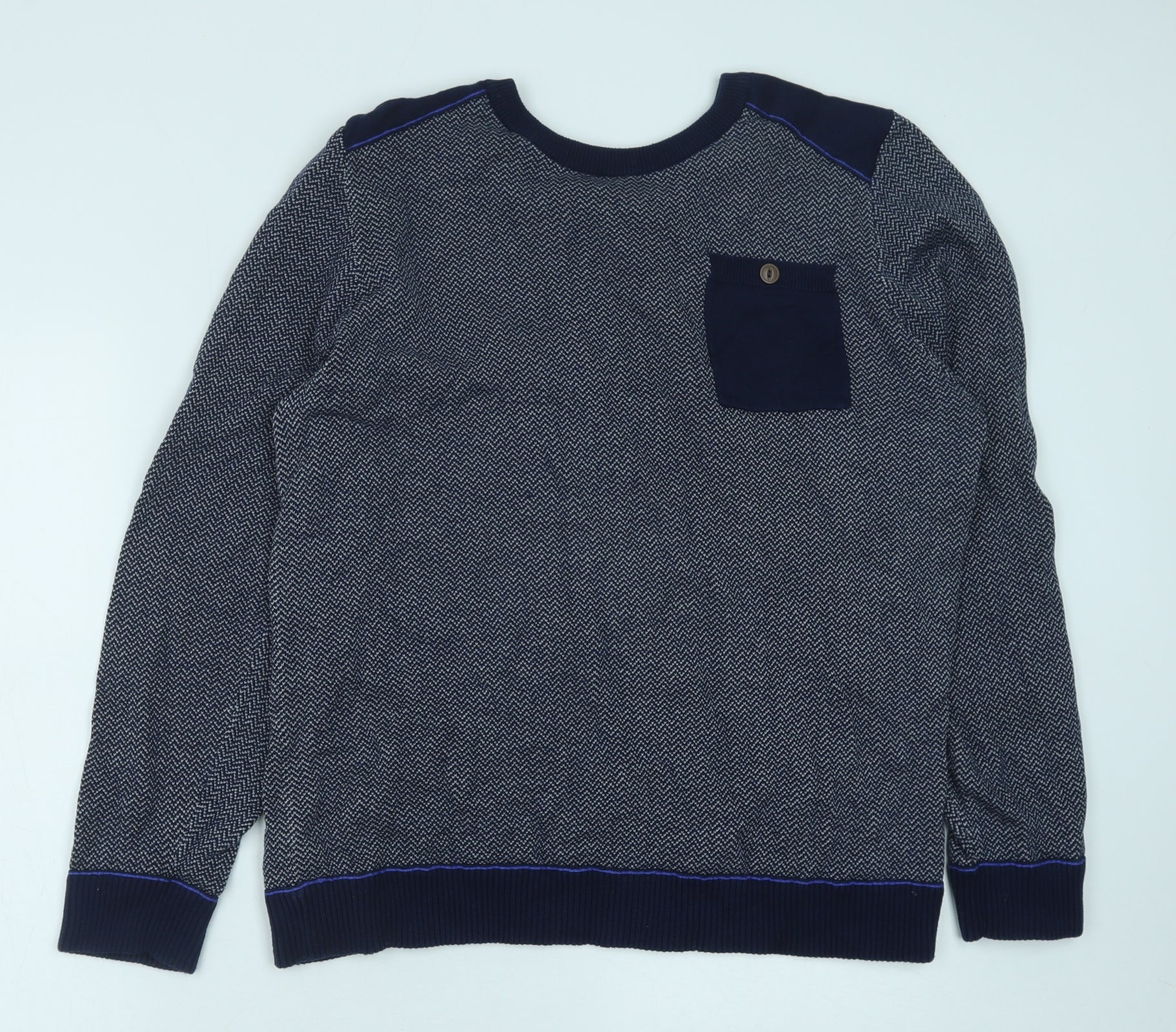 George Mens Blue Round Neck Geometric Cotton Pullover Jumper Size L