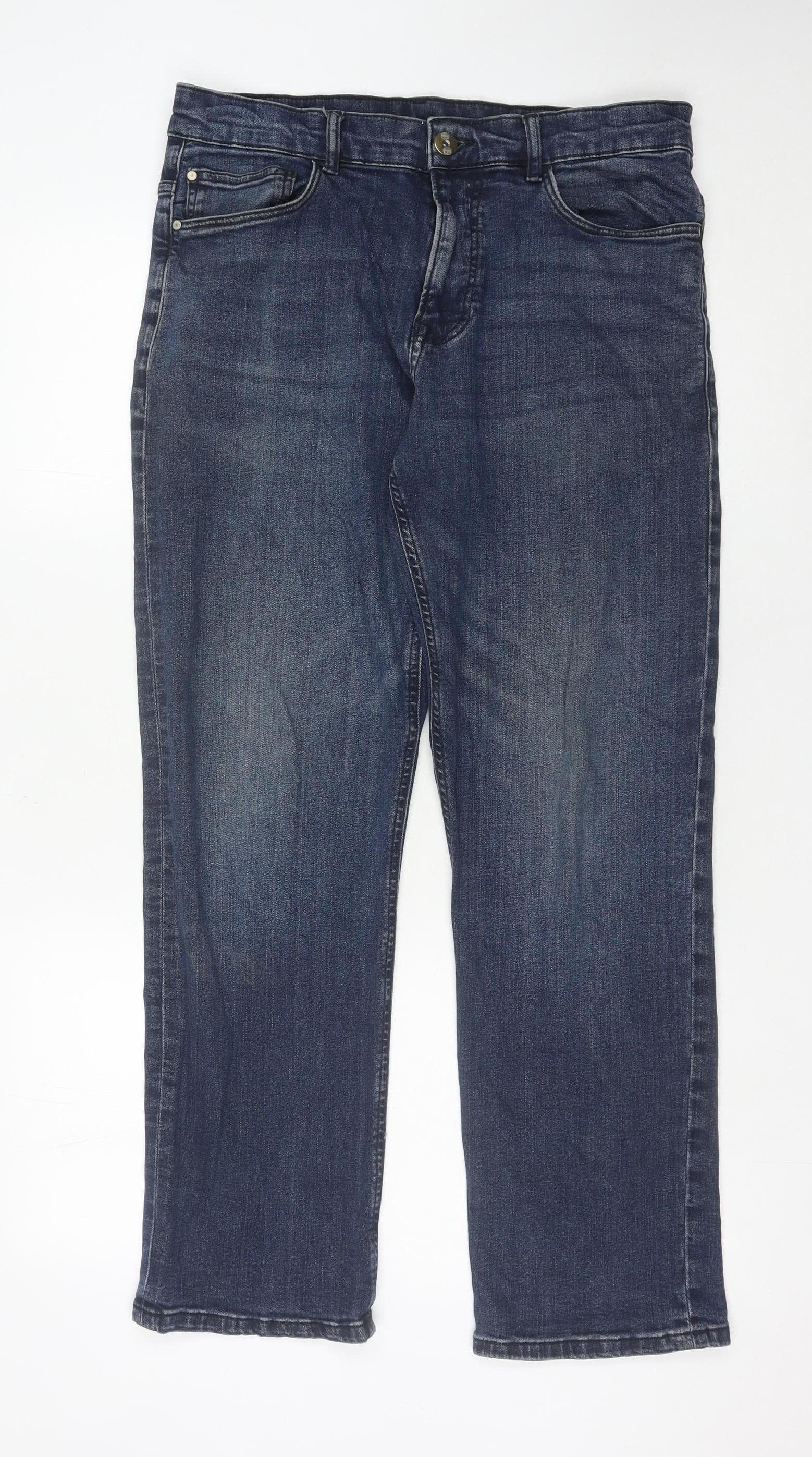 George Men's Blue Straight Jeans, 32W 30L, Dark Wash