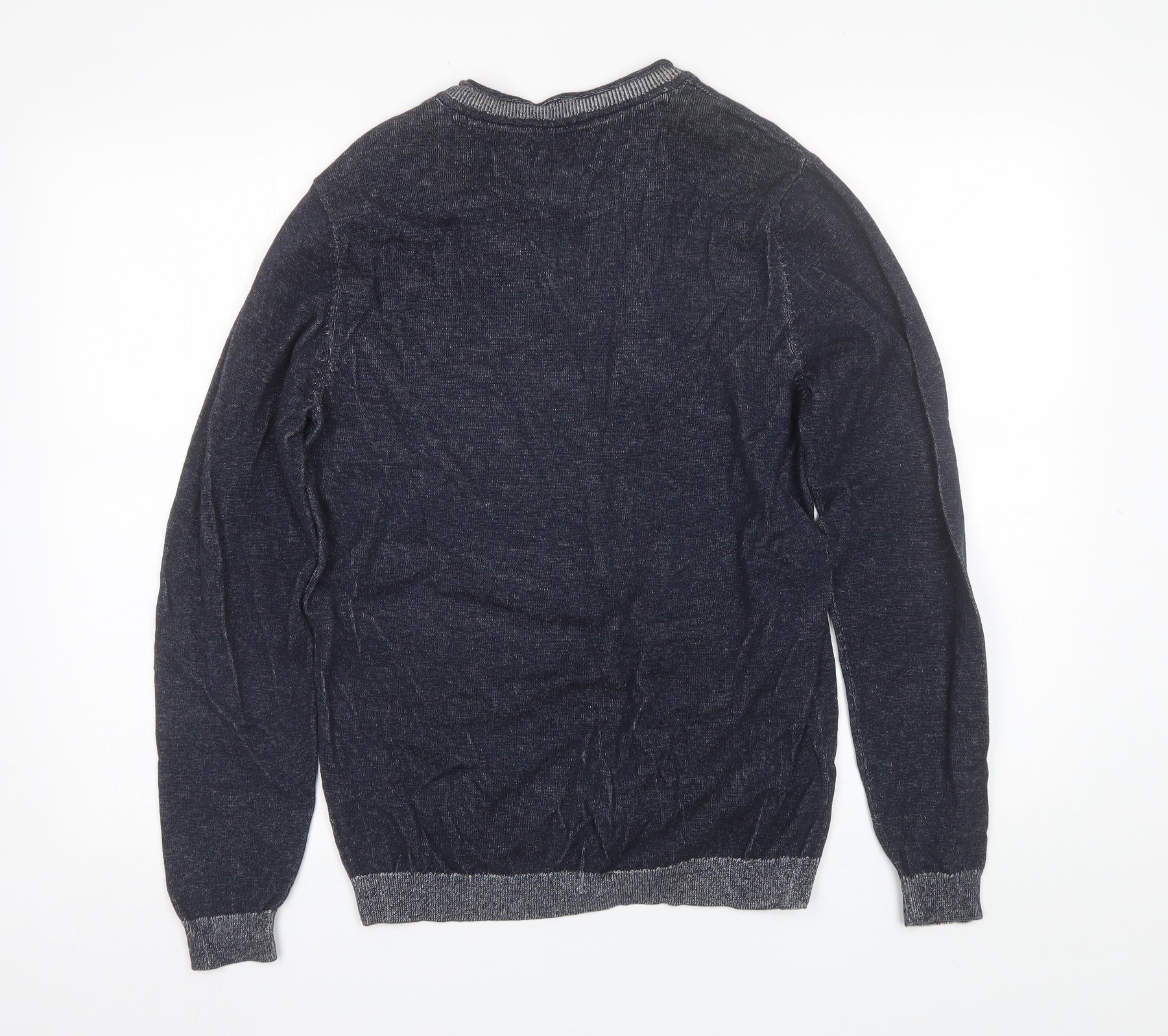 George Mens Blue V-Neck Cotton Pullover Jumper Size M