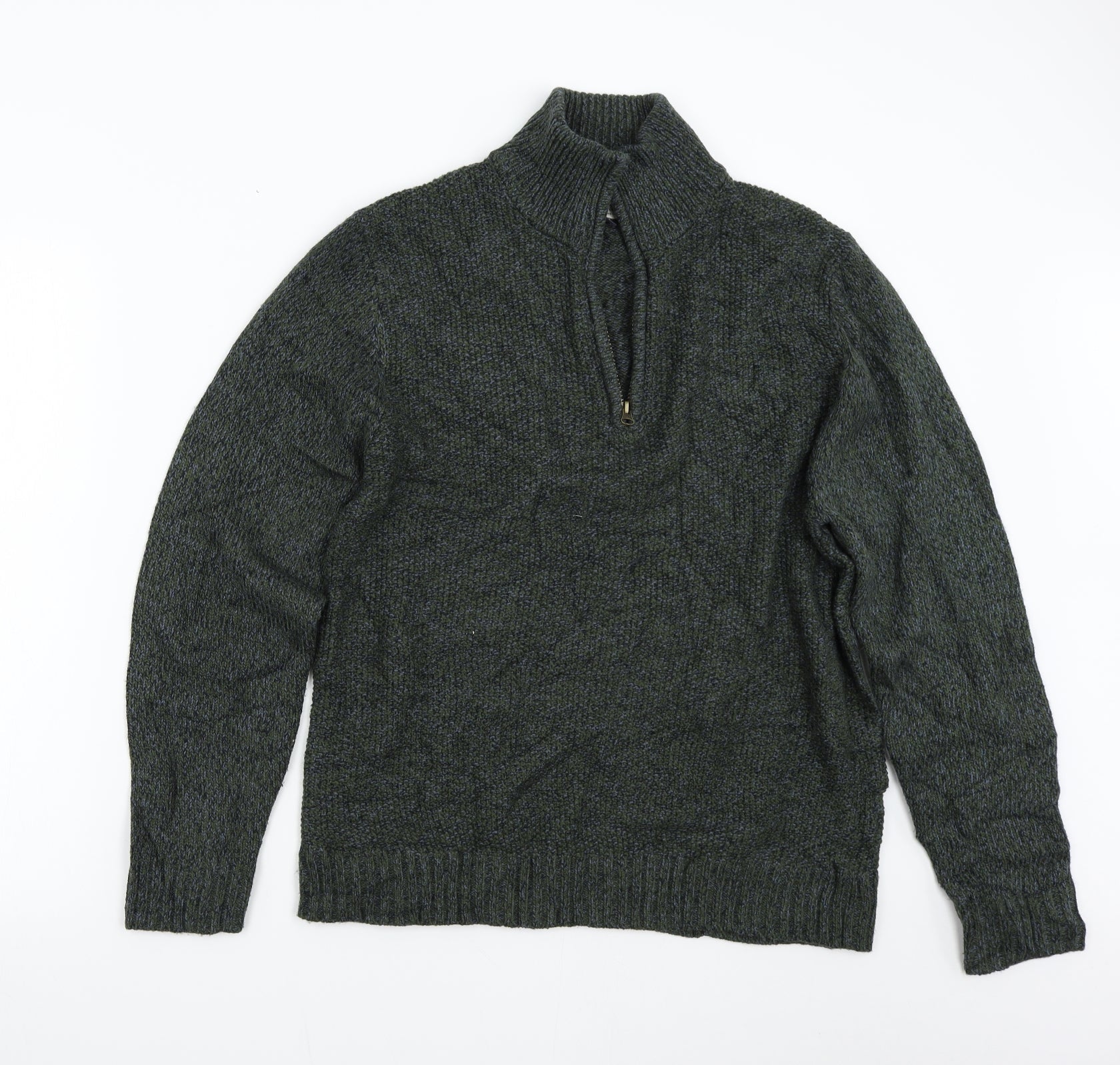 George Mens Green Knit Henley Jumper Size M