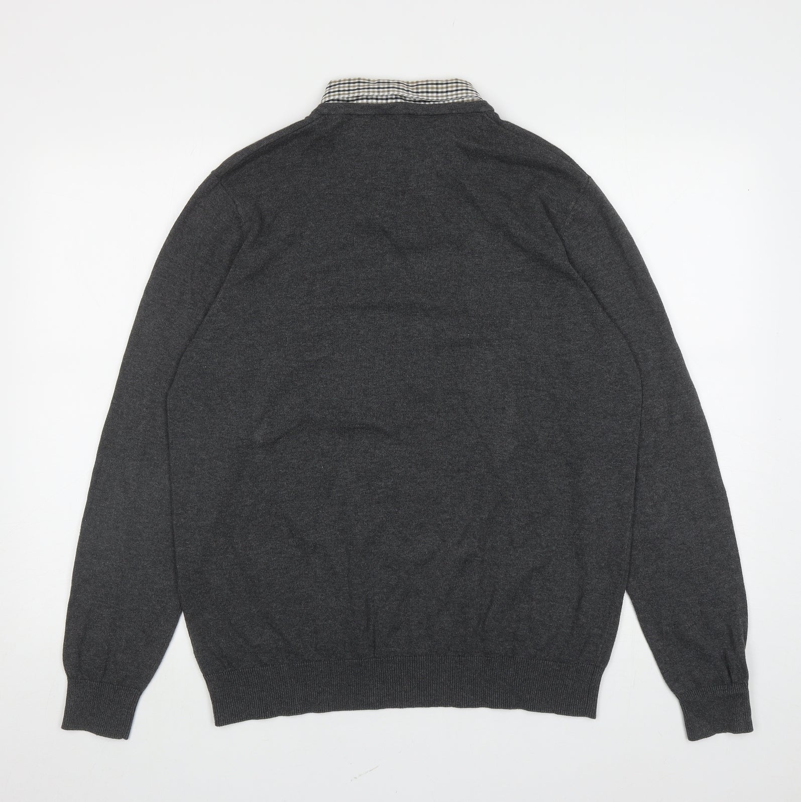 George Mens Grey Collared Cotton Henley Jumper Size L