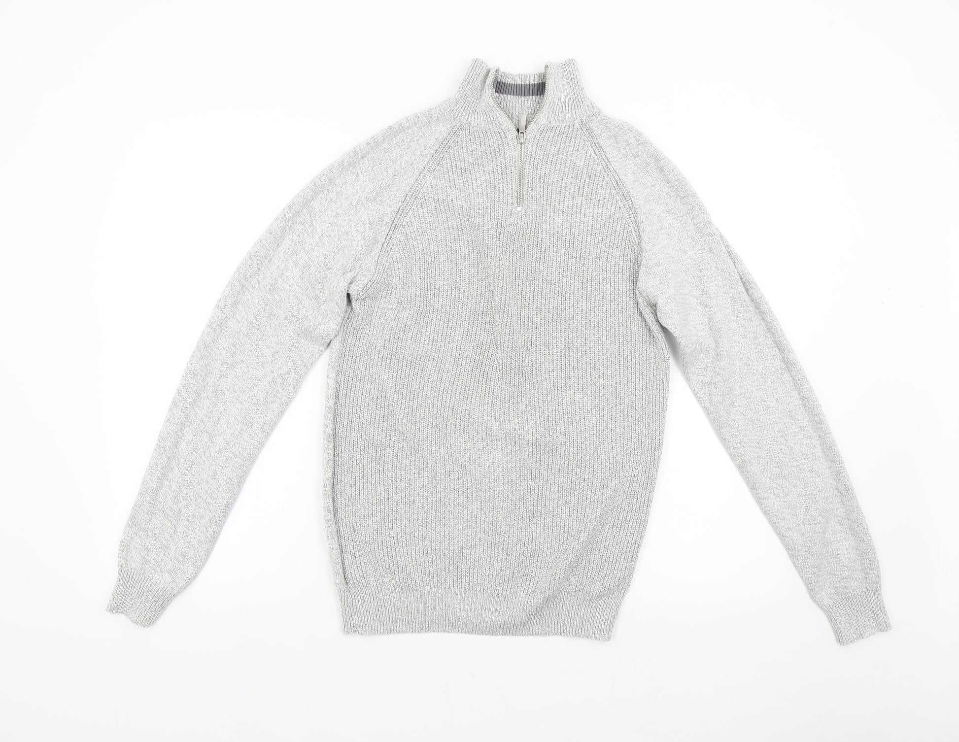 George Mens Grey Knit Henley Jumper Size M