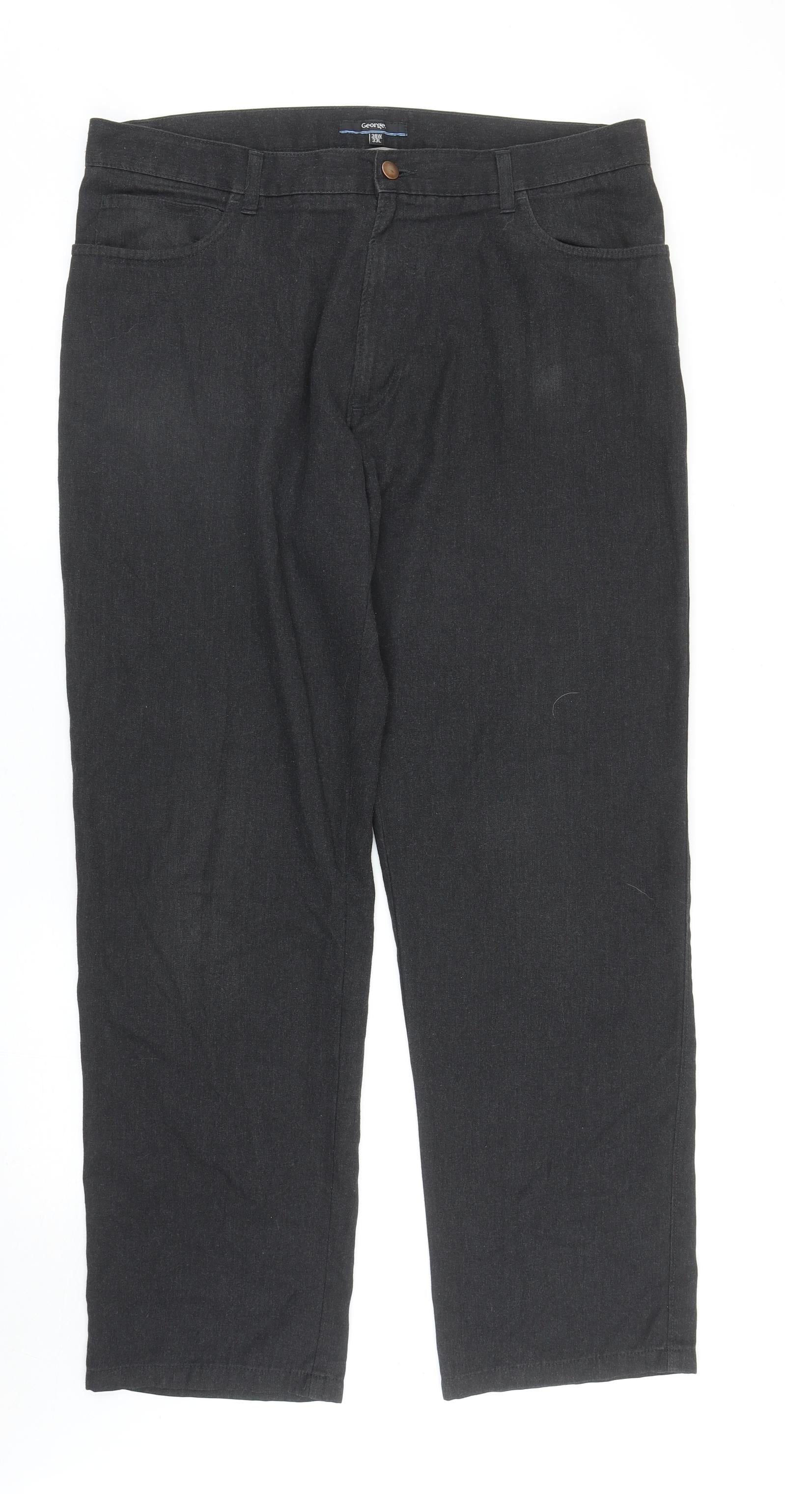 George Mens Grey Polyacrylate Fibre Chino Trousers Size 38 in L33 in Regular Zip